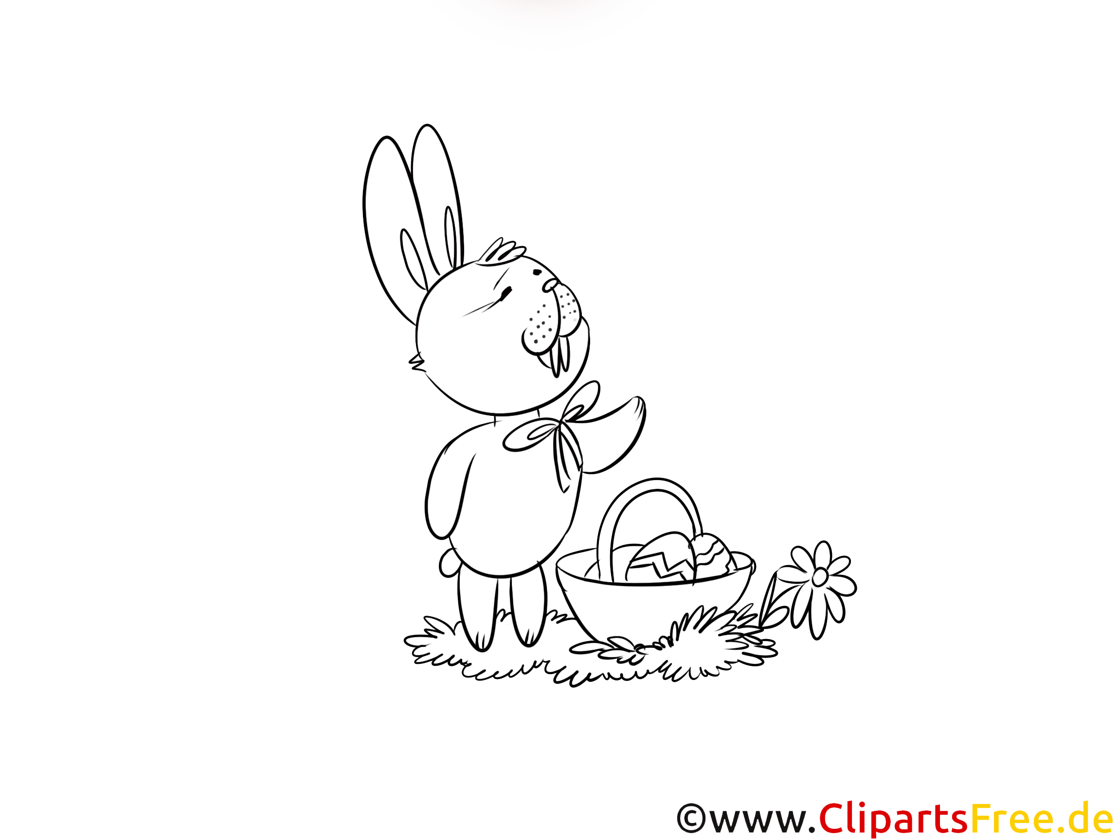 Kostenloses Ausmalbild Hase mit bunten Eiern als Malvorlage PDF