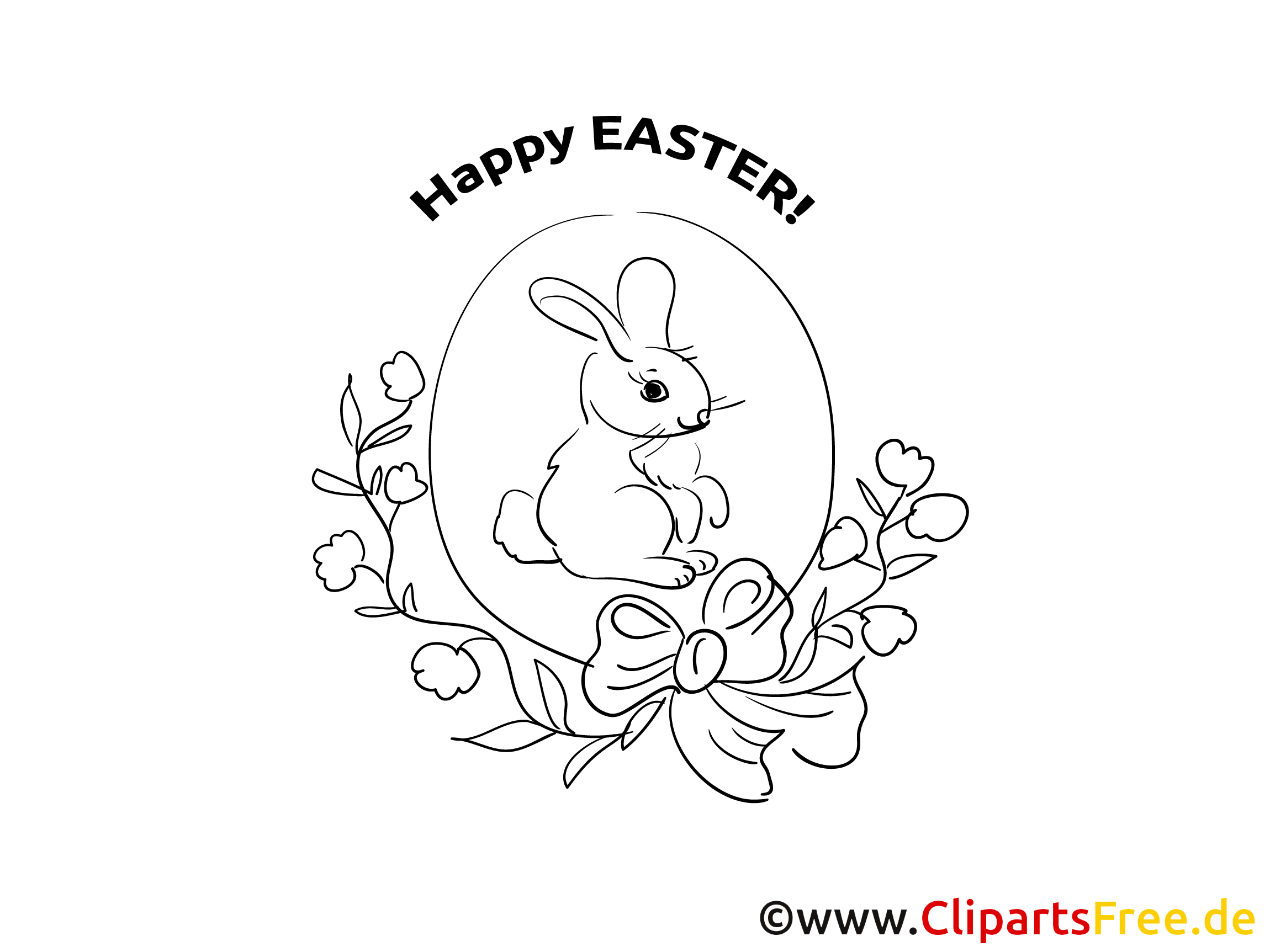 Schau dir dieses süße Bild an! Ein fröhlicher Hase sitzt mitten in einem hübschen Blumenarrangement. Er hat große, neugierige Ohren und schaut ganz entspannt aus. Um ihn herum gibt es viele florale Details – die Blumen sind klein und zart, und sie sind Liebe zum Detail gezeichnet. Über dem Hasen steht in fröhlicher Schrift „Happy EASTER!“. hm, Das Ganze wirkt richtig frühlingshaft, oder? Ein Bild zum Ausmalen, das ganz viel Freude bringt!