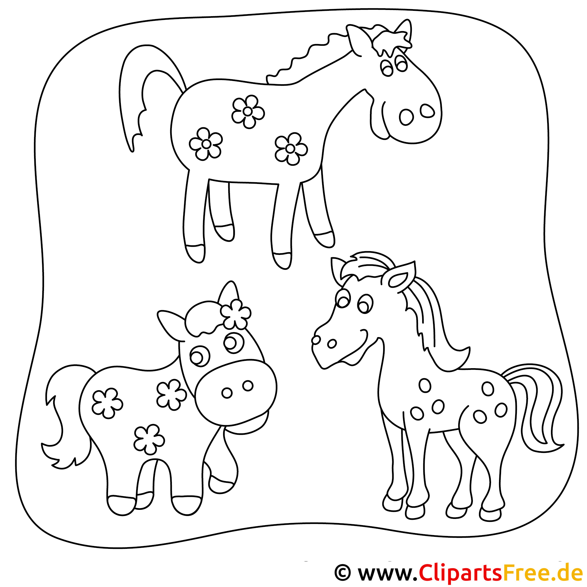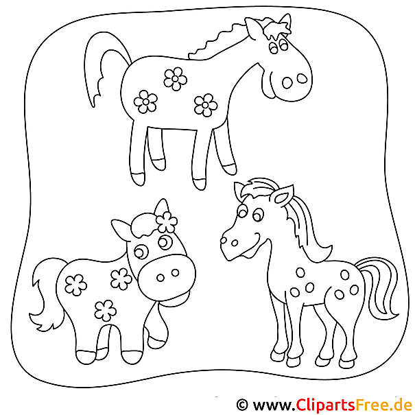 Original-Bild: Kostenloses Ausmalbild mit Pferden - Malvorlage im PDF-Format