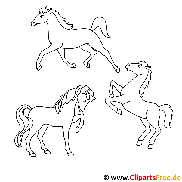 Kostenloses Ausmalbild mit fröhlichen Pferden als Malvorlage PDF