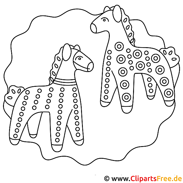 Original-Bild: Kostenloses Ausmalbild mit süßen Pferden als Malvorlage im PDF