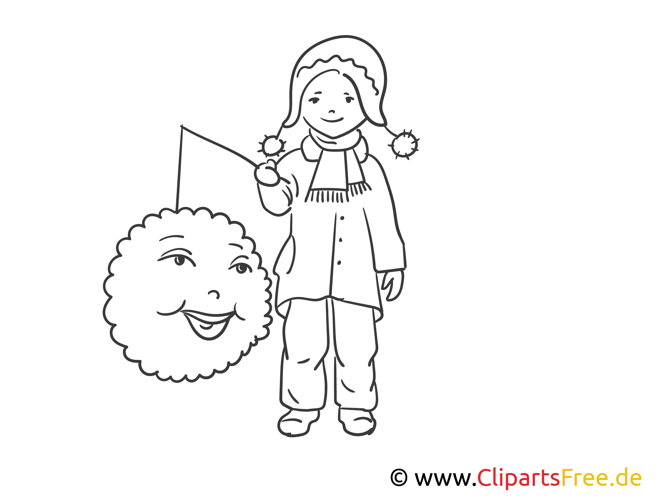 Kostenloses Ausmalbild Schneeballkind als PDF Malvorlage für Kinder
