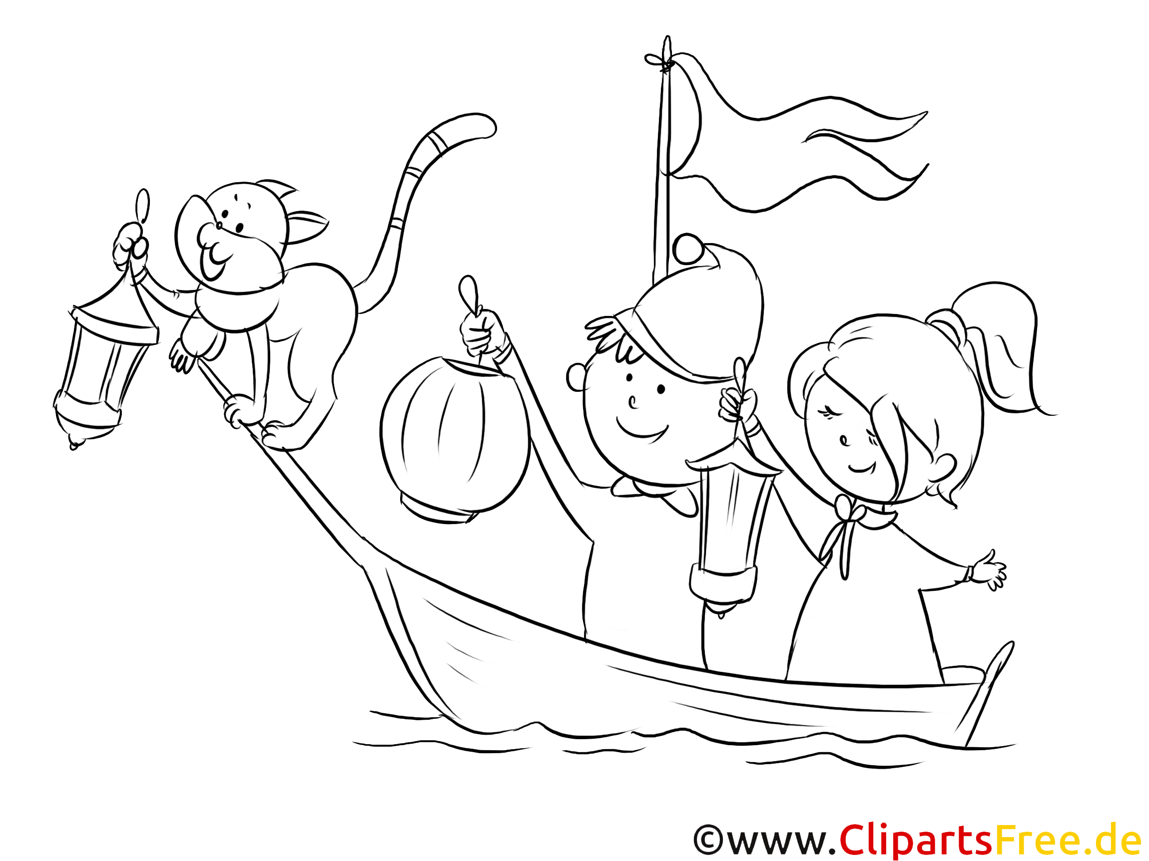 Kostenloses Ausmalbild für Kinder im Boot – Malvorlage im PDF