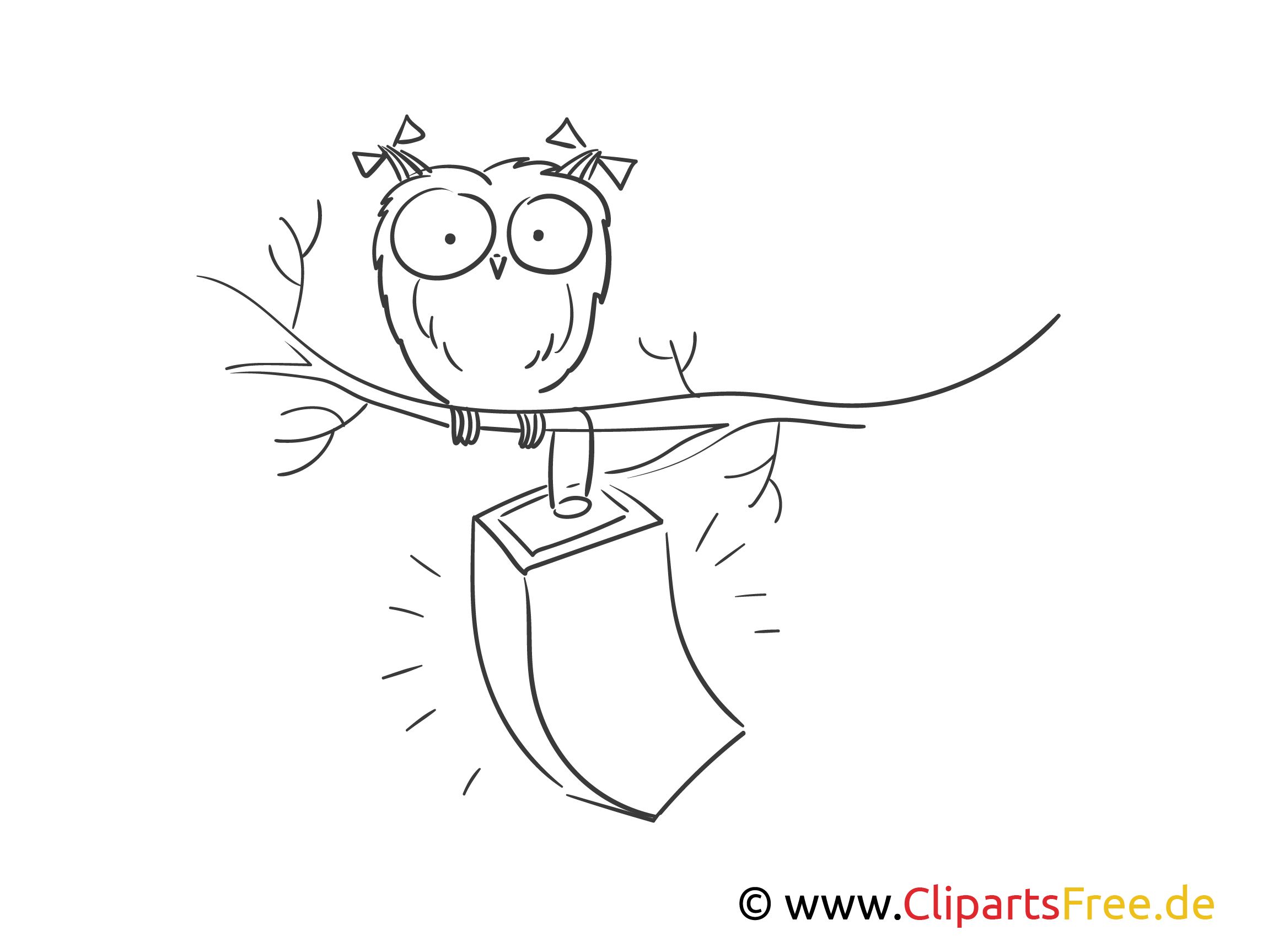 In diesem schönen Ausmalbild sitzt eine lustige Eule auf einem Baumast. Mit großen, runden Augen, die fast schon verwundert aussehen, und kleinen Schleifen auf dem Kopf tritt sie freundlich in Szene. Der Ast ist schlicht, aber mit ein paar feinen Zweigen geschmückt. Unter der Eule baumelt ein Stück Papier von einem kleinen Halter. Vielleicht, so überlege ich, ist das ein Hinweis, eine Liste oder einfach nur eine leere Seite, die darauf wartet, bemalt zu werden.... halt, Die Gesamtkomposition strahlt eine gewisse Kindlichkeit aus, die einfach zum Ausmalen einlädt.