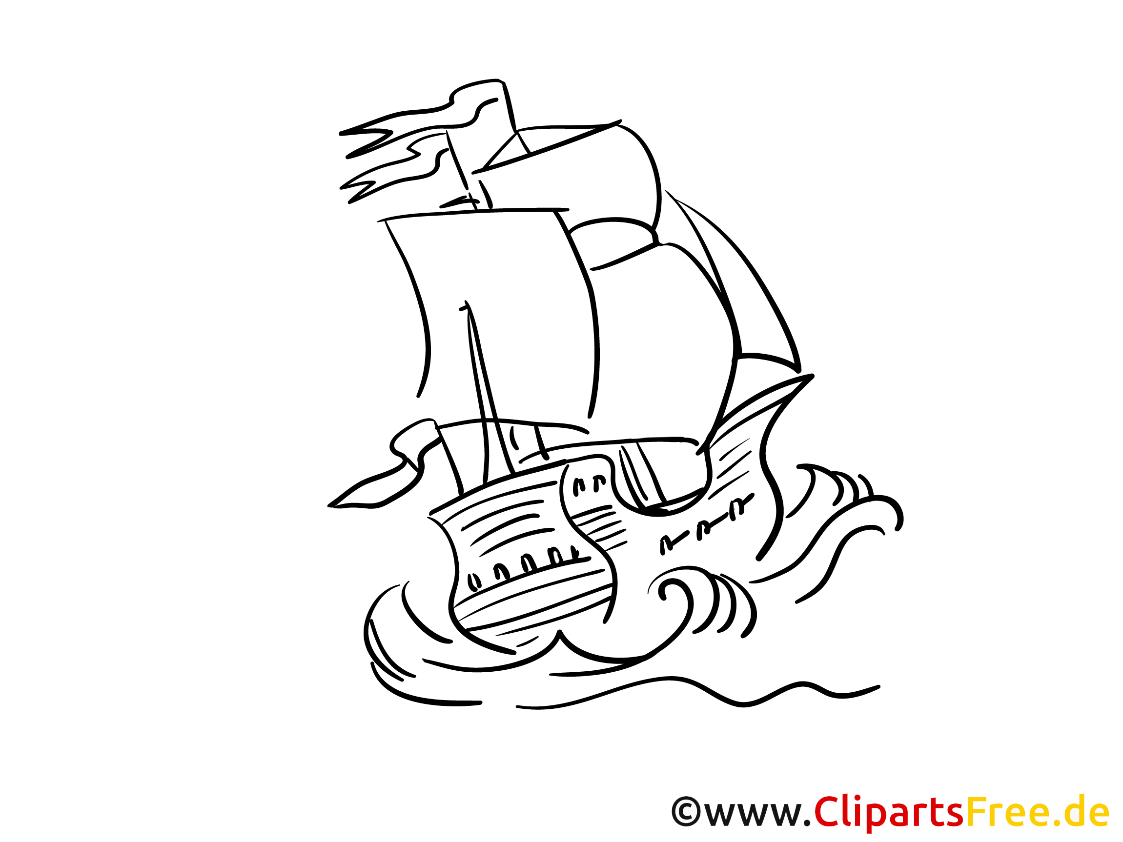 Abenteuerliches Ausmalbild eines Schiffes auf den Wellen
