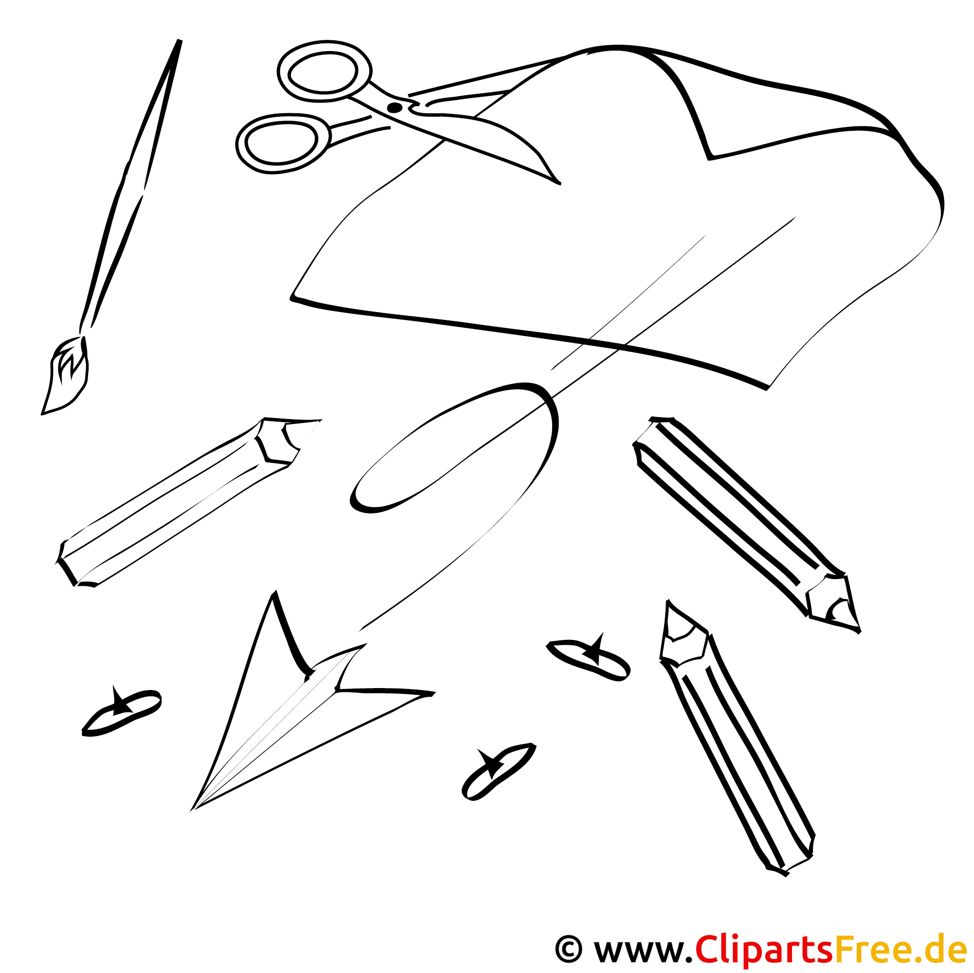Kostenloses Ausmalbild mit Bastelmaterialien als PDF herunterladen