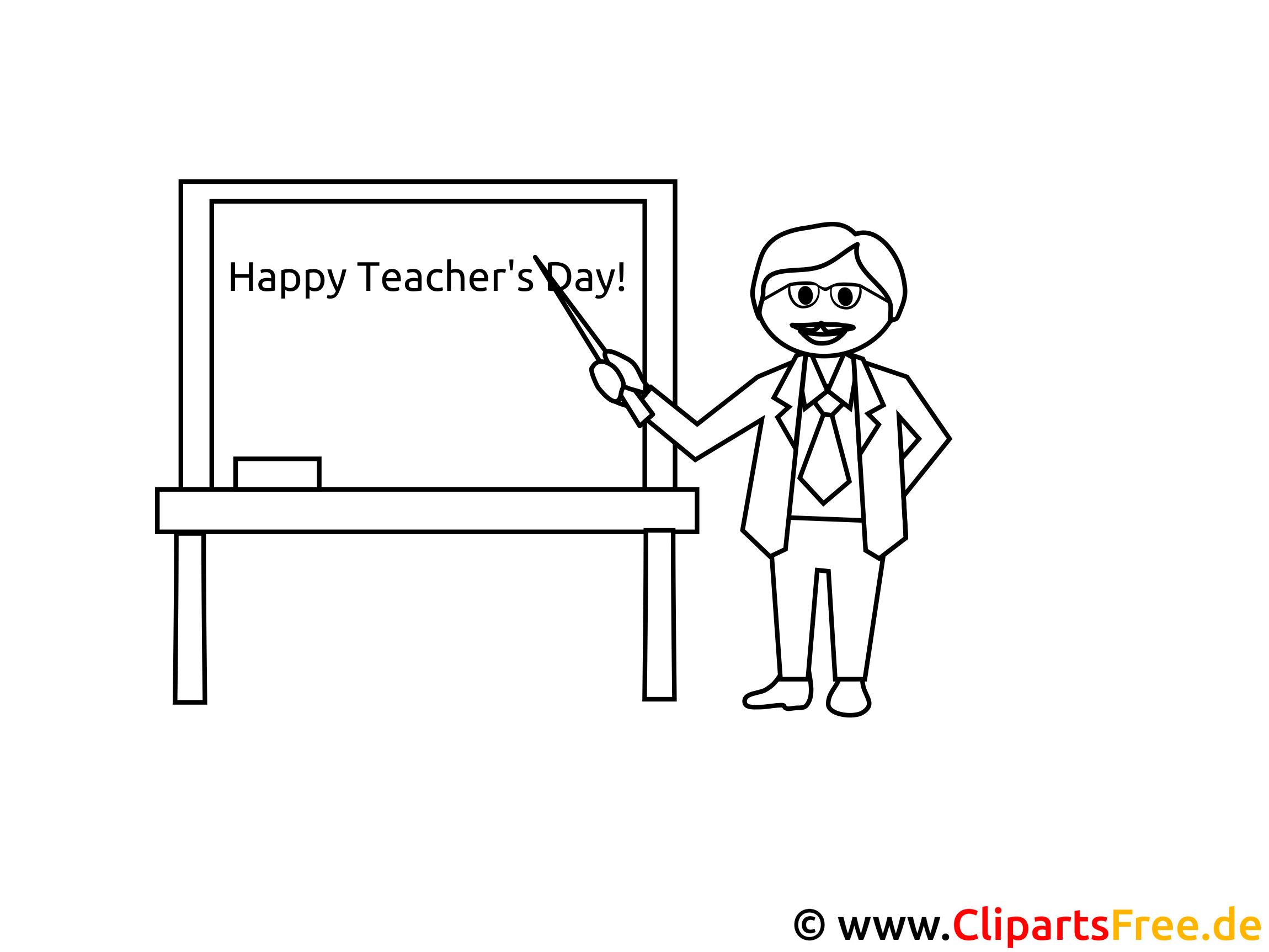 Hier sehen wir eine fröhliche Figur, die eine Klasse präsentiert. Der Lehrer steht lächelnd vor einer großen Tafel, auf der „Happy Teacher's Day!“ steht. Er hält einen Zeigestock in der Hand und hat einen sympathischen Ausdruck im Gesicht. Die ganze Szenerie strahlt Freude und Anerkennung aus. Der Lehrer wirkt, als ob er bereit ist, spannende Dinge zu erklären oder die Schüler zu motivieren. Man könnte sich fast vorstellen, wie er mit Begeisterung über das Lernen spricht und die Kinder animiert, neugierig zu sein?!. Echt niedlich, oder?