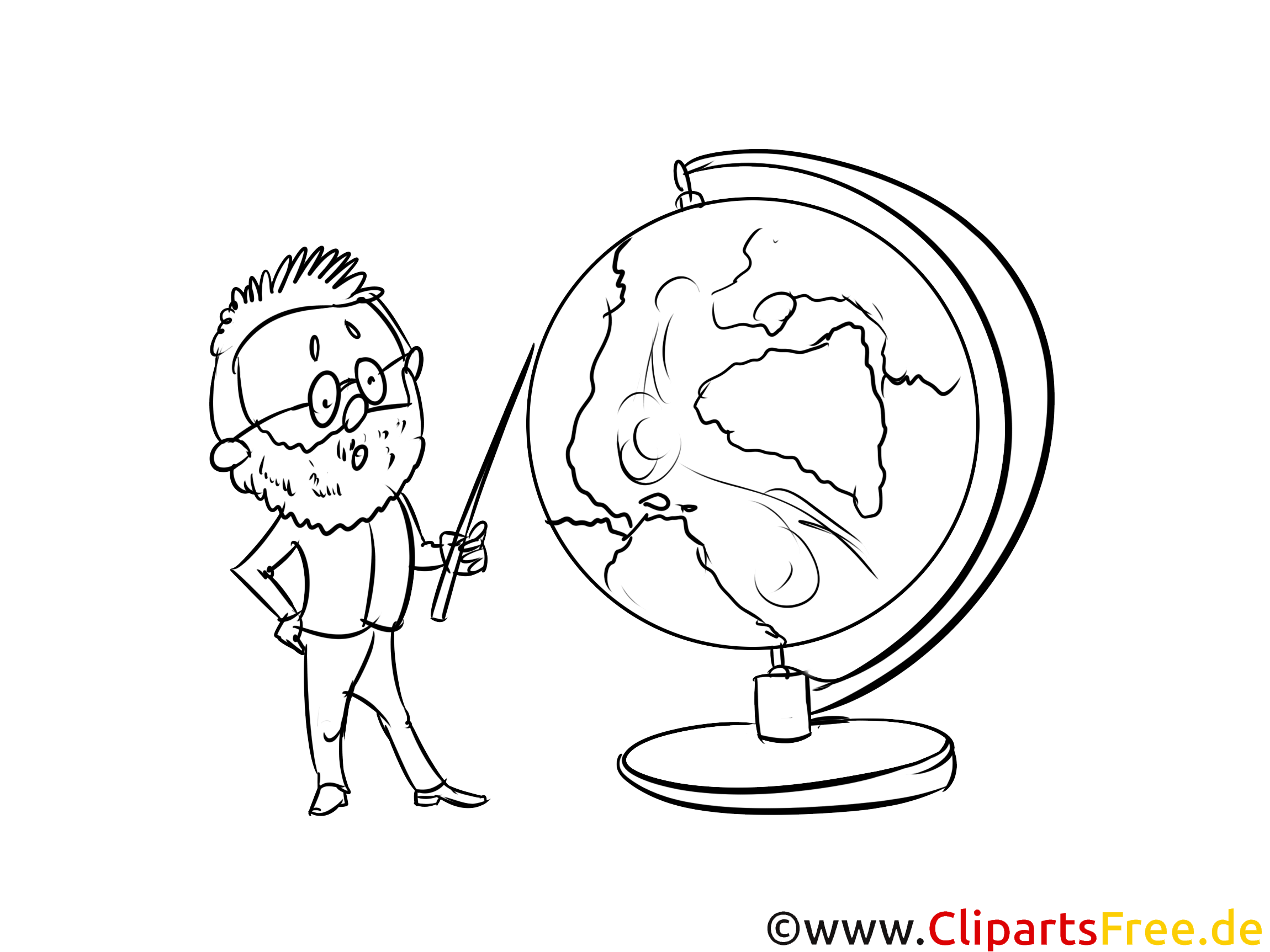 Kostenloses Ausmalbild Lehrer mit Globus als PDF Malvorlage