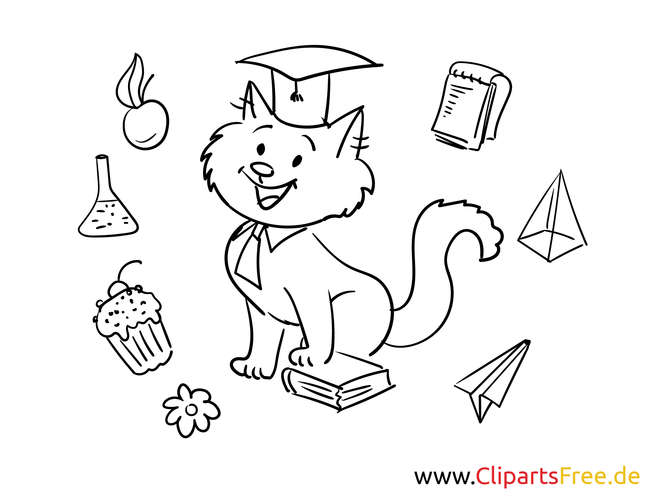 Kostenloses Ausmalbild Kater im Abschluss-Hütchen als PDF