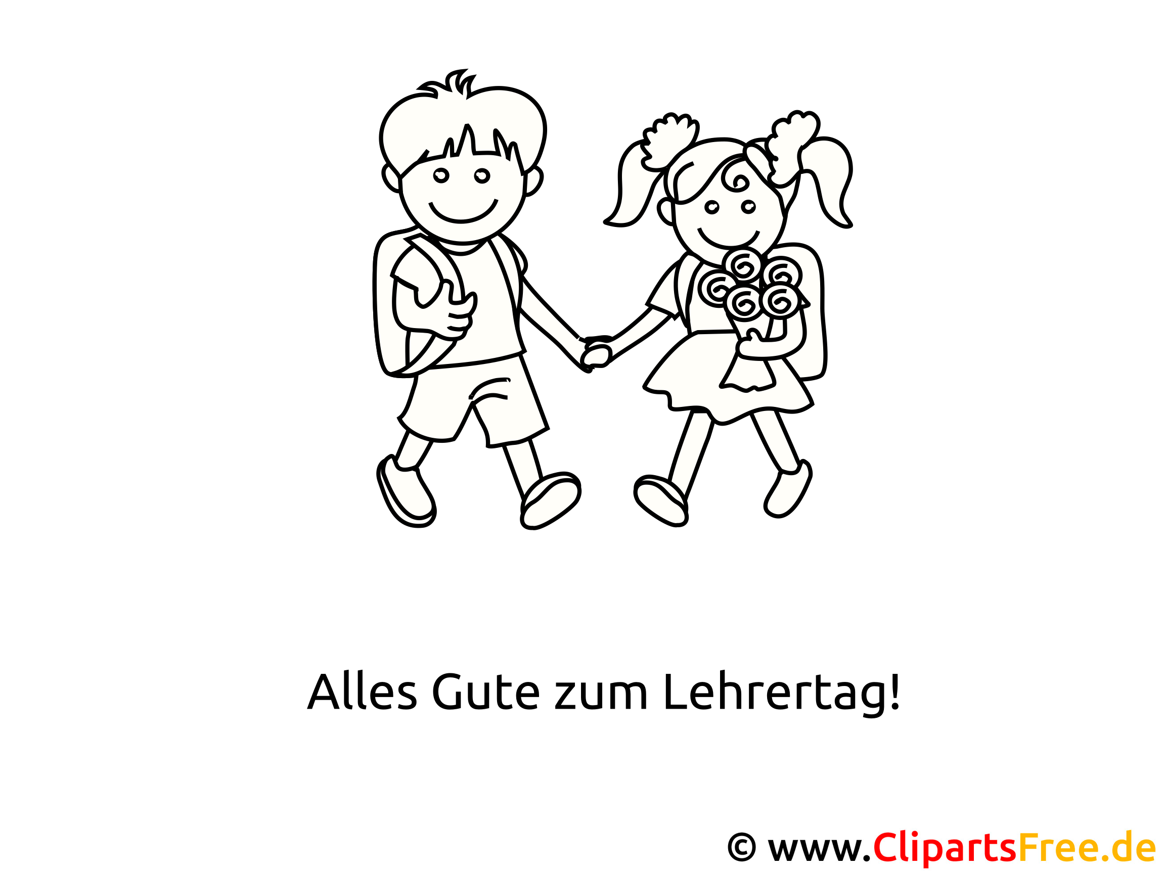 Das Bild zeigt zwei fröhliche Kinder, die Hand in Hand spazieren gehen. Der Junge hat einen Rucksack auf dem Rücken, während das Mädchen einen wunderschönen Strauß Blumen in der Hand hält. Man sieht ihren fröhlichen Gesichtsausdruck, vielleicht freuen sie sich auf einen besonderen Tag - wie den Lehrertag! Die Szene strahlt eine heitere, freundliche Atmosphäre aus und erinnert an die Unbeschwertheit der Kindheit. Diese charmante Darstellung ist perfekt für viele Gelegenheiten und bringt einfach gute Laune.