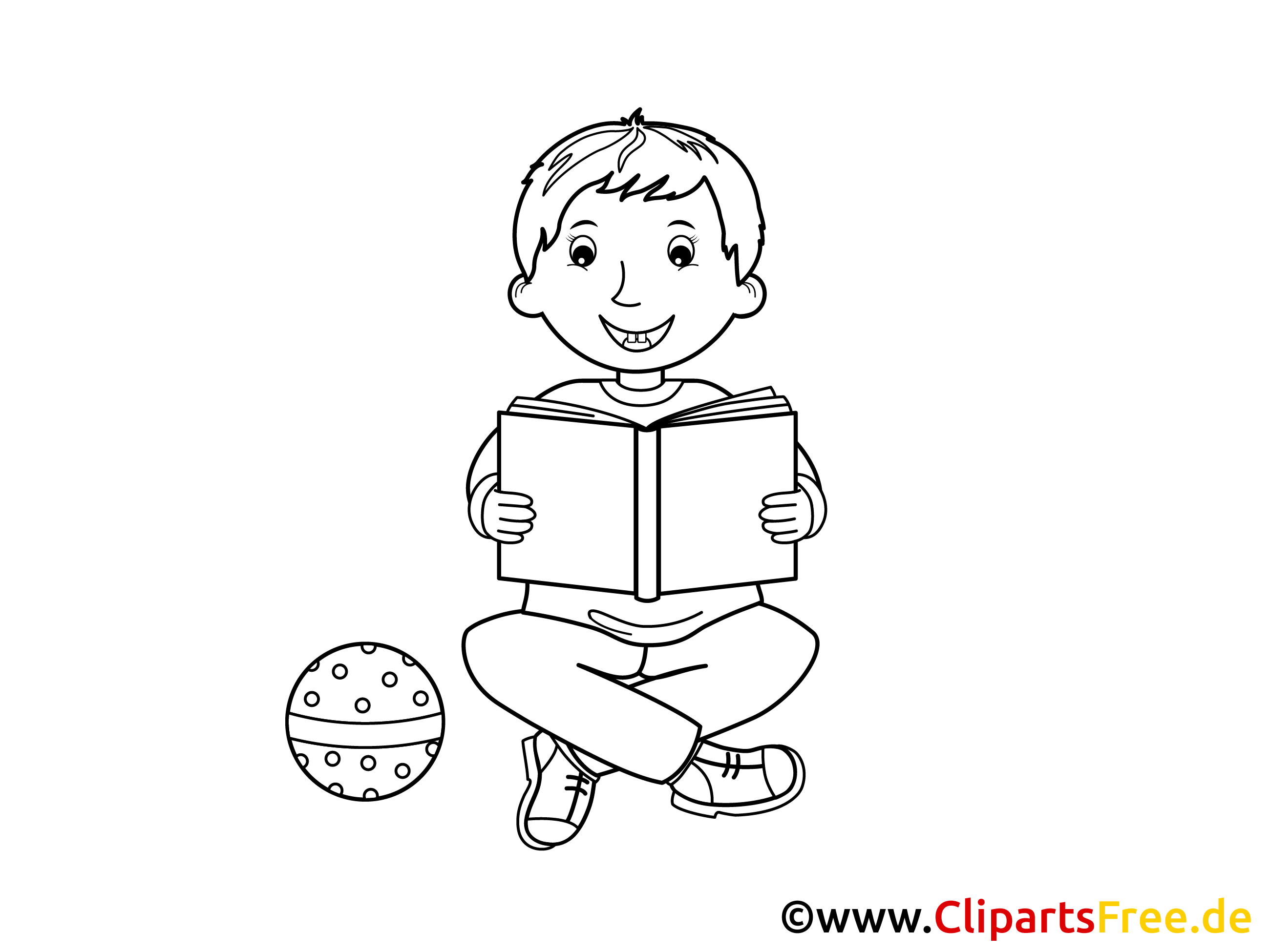 Kostenloses Ausmalbild: Fröhliches Kind mit Buch als Malvorlage PDF