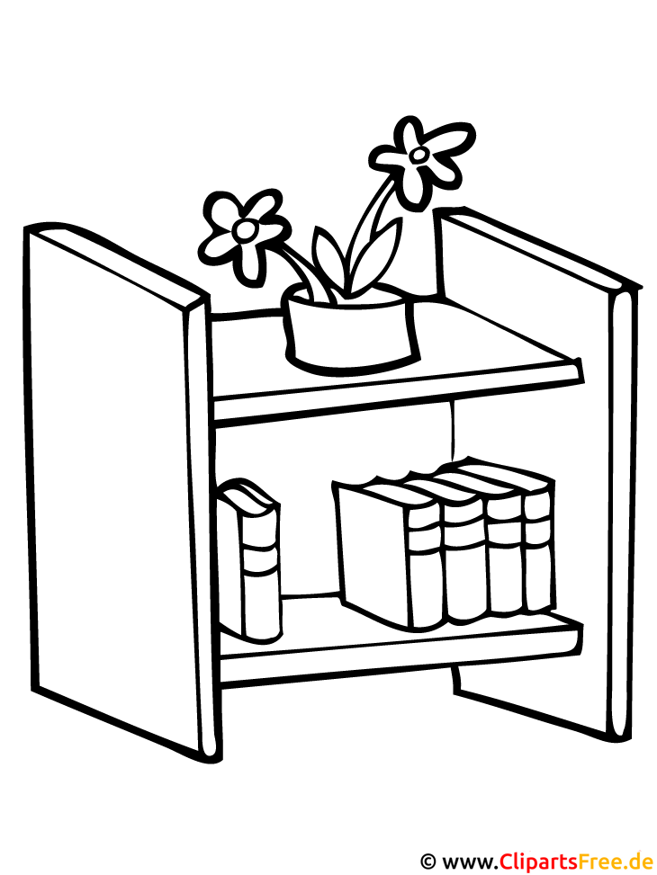 Kostenloses Ausmalbild Bücherregal im PDF-Format zum Ausmalen