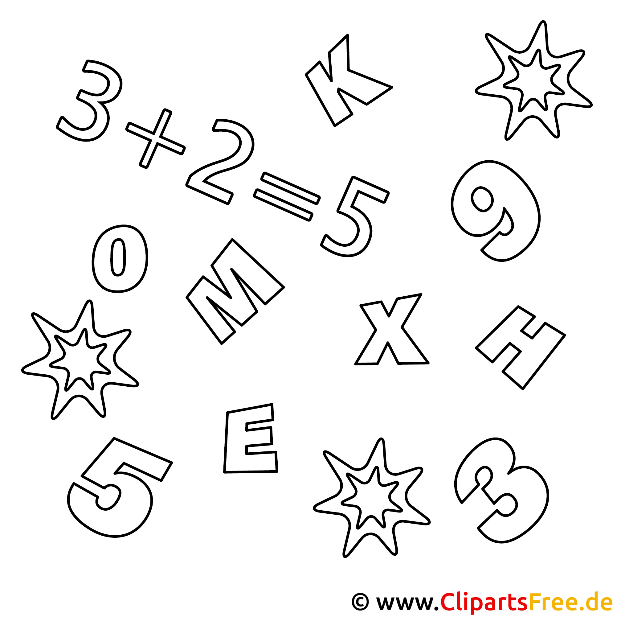 Dieses Ausmalbild bietet ein spannendes Durcheinander aus Zahlen und Buchstaben – ganz kreativ! Hier finden sich all diese herrlichen Symbole, die den Matheunterricht so lebendig machen. Von der einfachen 3, über das Pluszeichen, bis hin zum fantastischen Stern, der einfach begeistert. Die große Vielfalt an Formen lässt ganz viel Raum für eigene Ideen. Darunter sind auch Buchstaben wie M, K und E, die sich malerisch ins Bild mischen. Ideal also für alle kleinen Denker und kreative Köpfe!