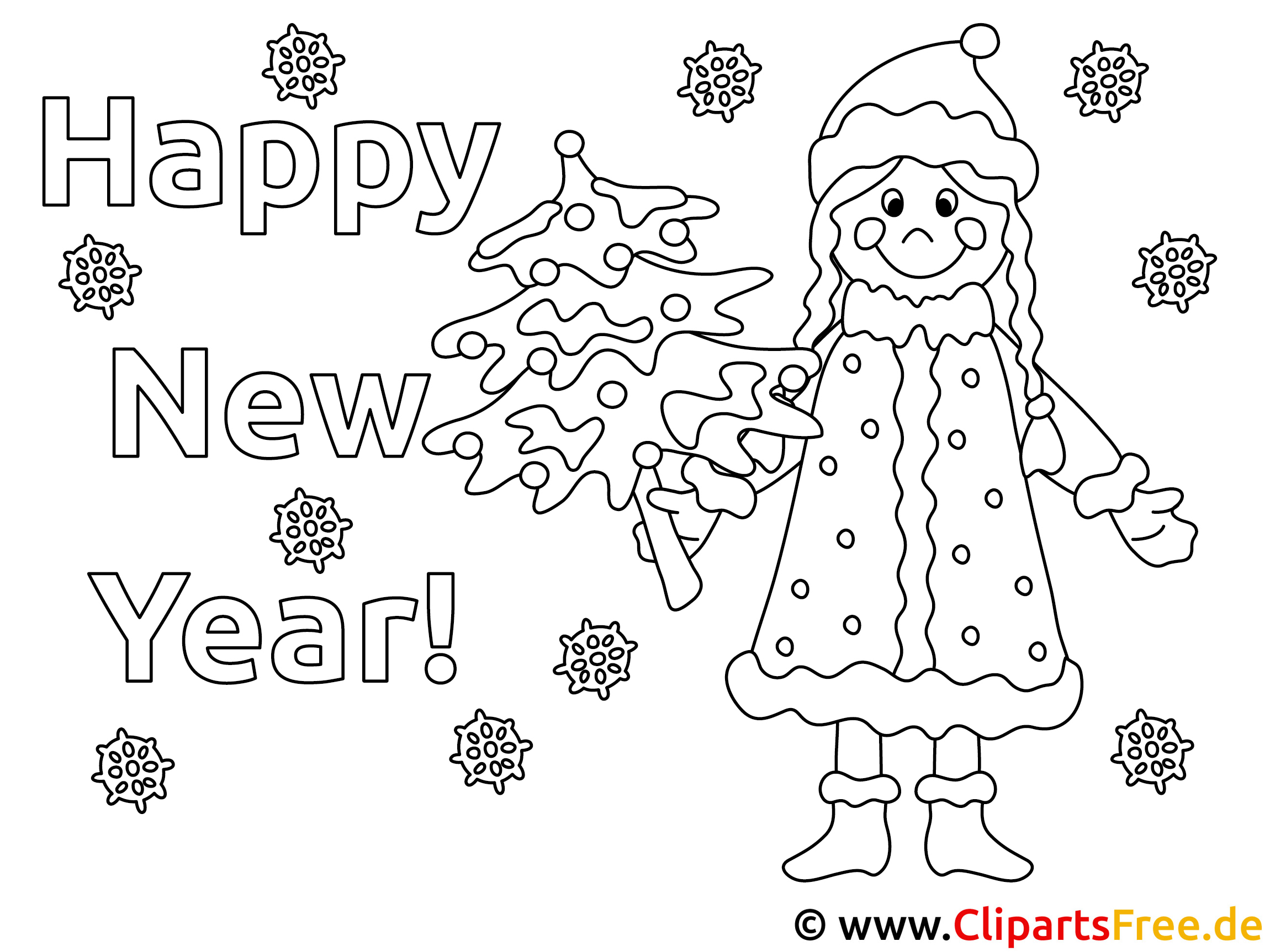 Diese herrliche Malvorlage zeigt ein fröhliches Mädchen, das einen prächtigen Weihnachtsbaum hält. Sie trägt einen langen, winterlichen Mantel, der richtig einladend aussieht. Und die große Mütze, die sie auf hat – einfach niedlich! Um sie herum tanzen schneebedeckte Flöckchen und nebenbei steht in großen Buchstaben: „Happy New Year!“ Mit dieser Ausmalbild kann die Vorfreude auf das neue Jahr gleich mitgestartet werden. Ein bisschen Magie, ein bisschen Spaß. Eine bunte Welt, die nur darauf wartet, entworfene Farben zu bekommen.