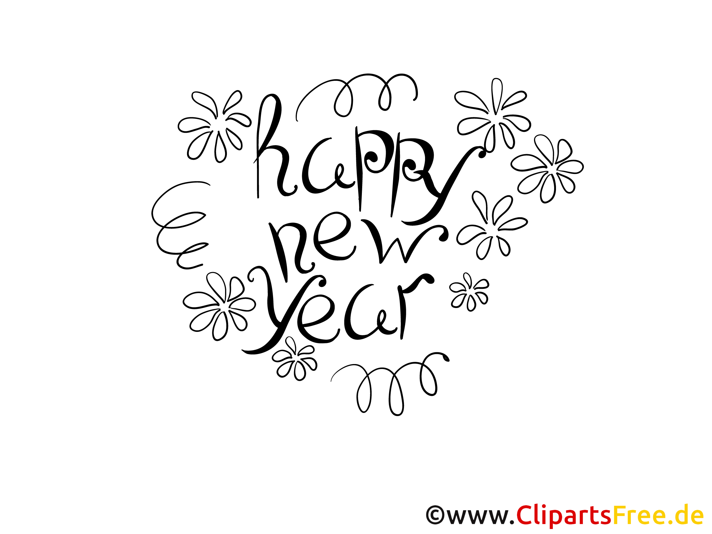 Kostenloses Ausmalbild Happy New Year als PDF Malvorlage