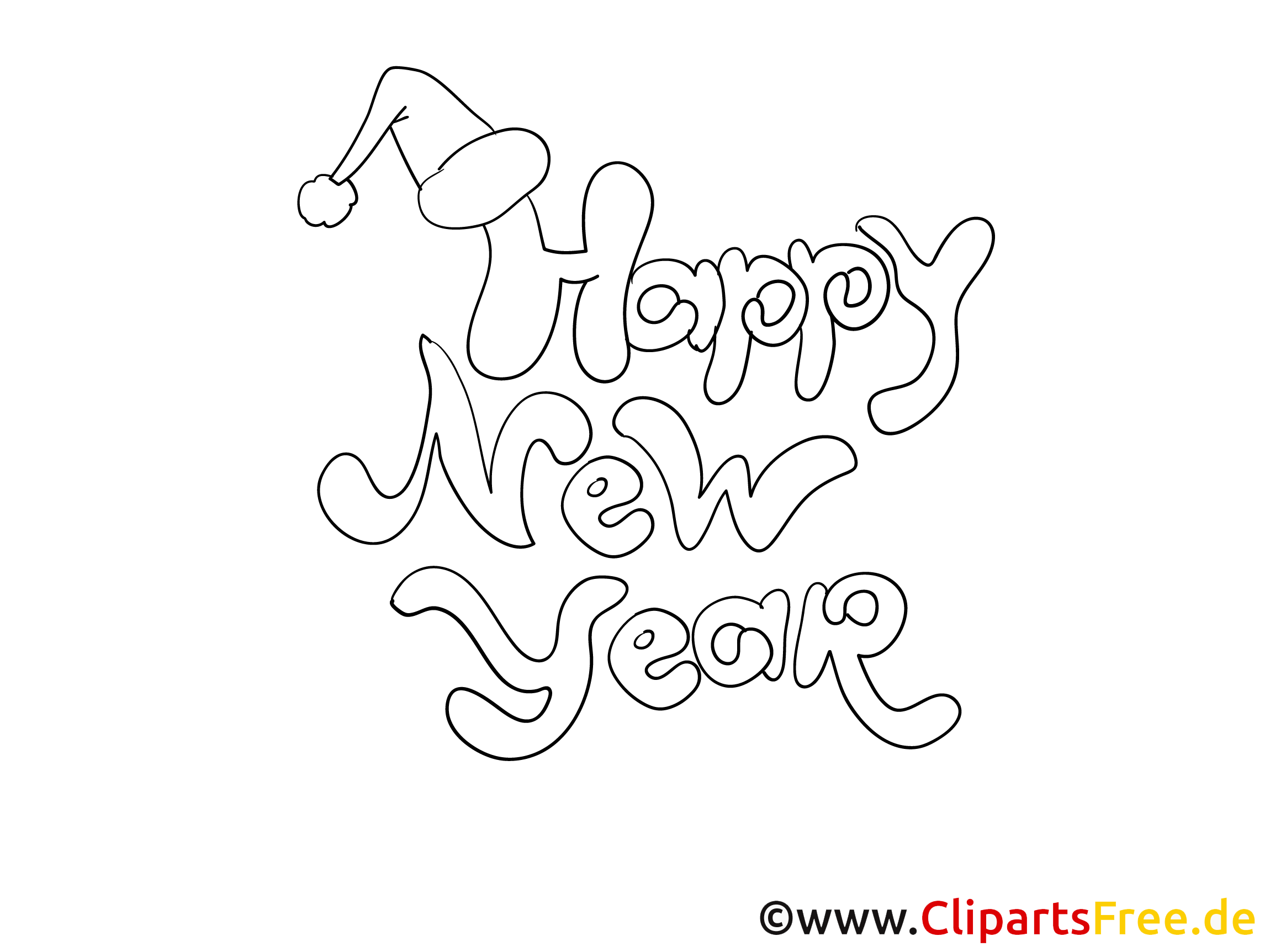 Kostenloses Ausmalbild Happy New Year als PDF Malvorlage