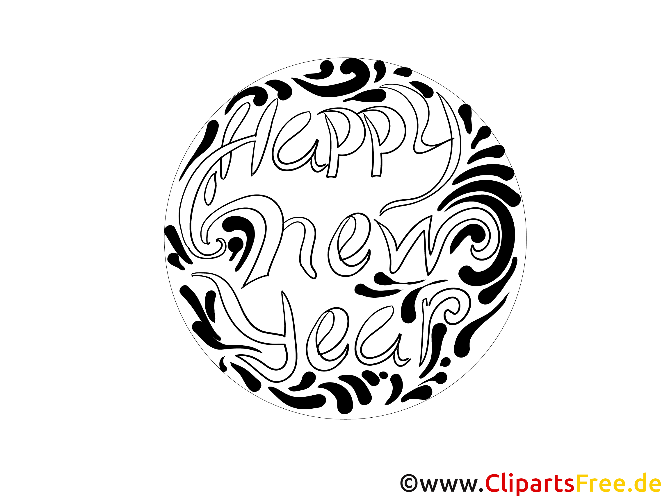 Kostenloses Ausmalbild Happy New Year als PDF Malvorlage gratis