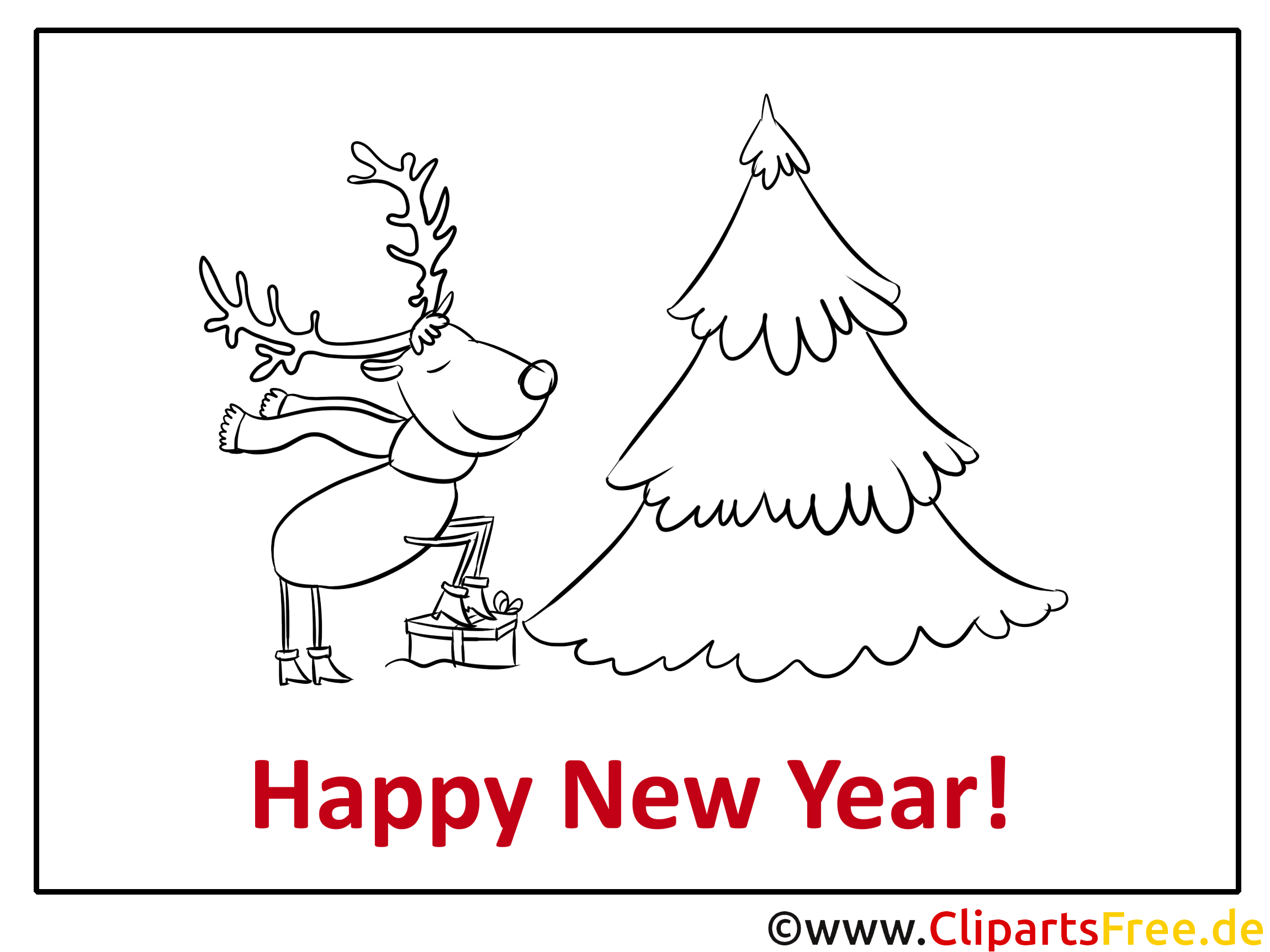 Kostenloses Ausmalbild Rentier am Weihnachtsbaum als PDF downloaden