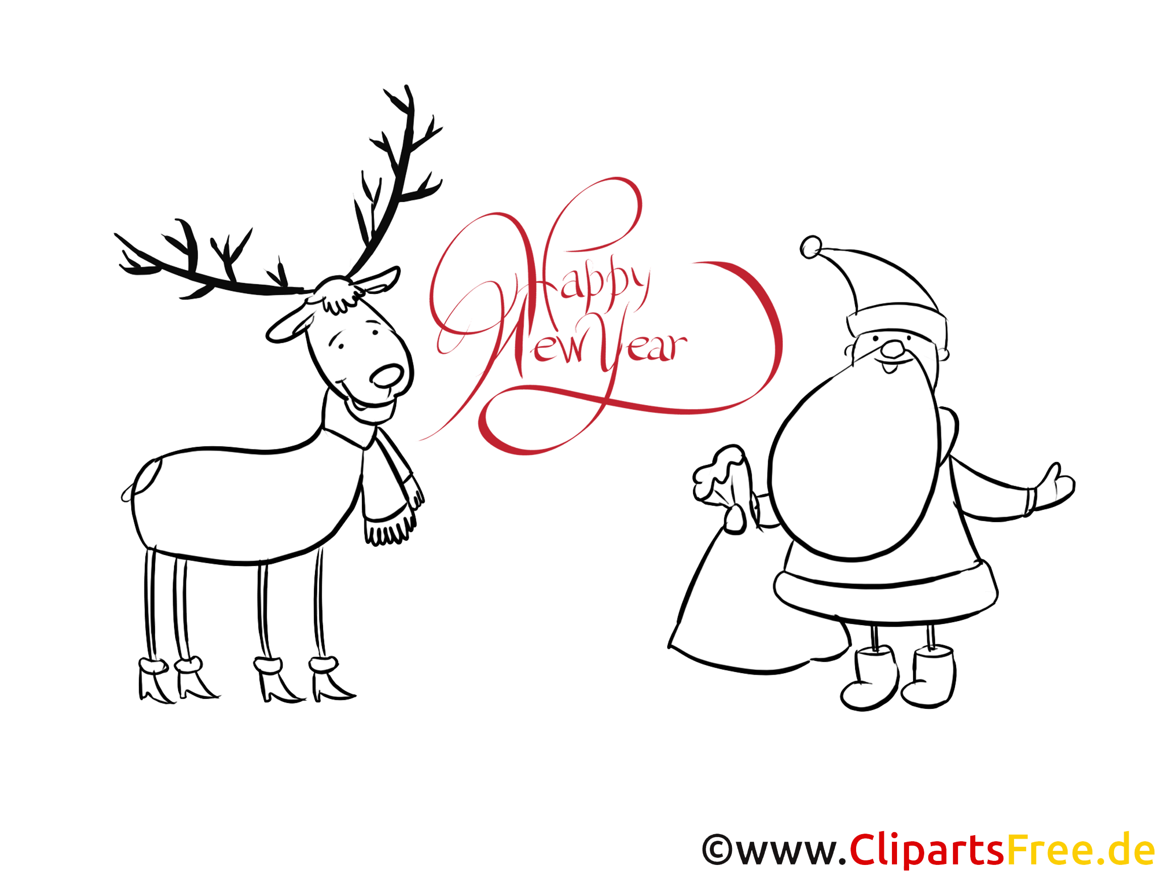 Hier haben wir ein ganz zauberhaftes Ausmalbild! Auf einer Seite steht der fröhliche Weihnachtsmann, sichtbar gut gelaunt, mit seinem großen Sack. Auf der anderen Seite – mal was anderes – ein rentier mit lustigen Schuhen! Irgendwie charmant, oder? Über ihnen prangt in geschwungenen Buchstaben der Schriftzug "Happy New Year". Es ist wirklich eine tolle Vorlage, um die Aufregung und Freude, die diese Zeit mit sich bringt, festzuhalten.