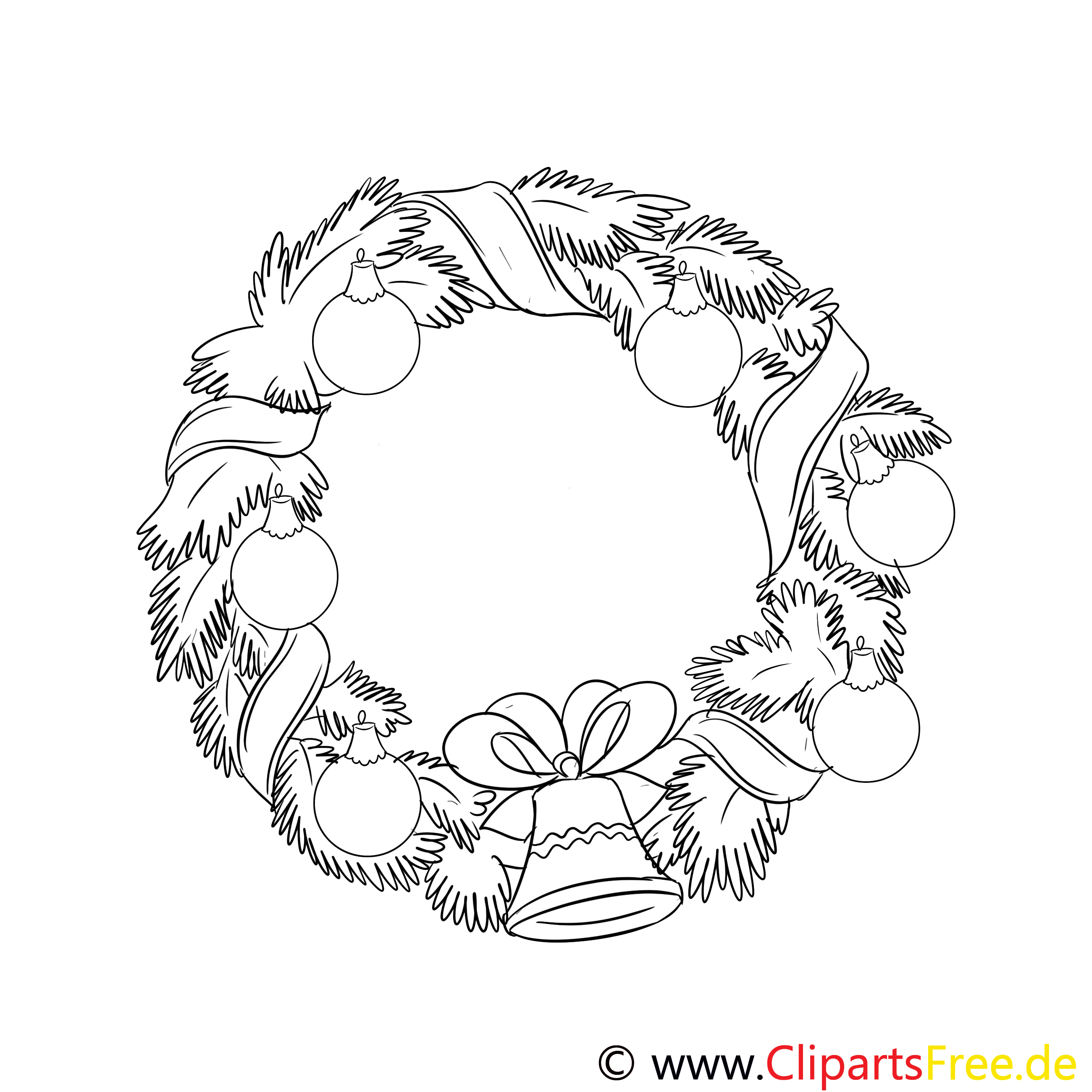 Kostenloses Ausmalbild Weihnachtskranz als PDF Malvorlage gratis