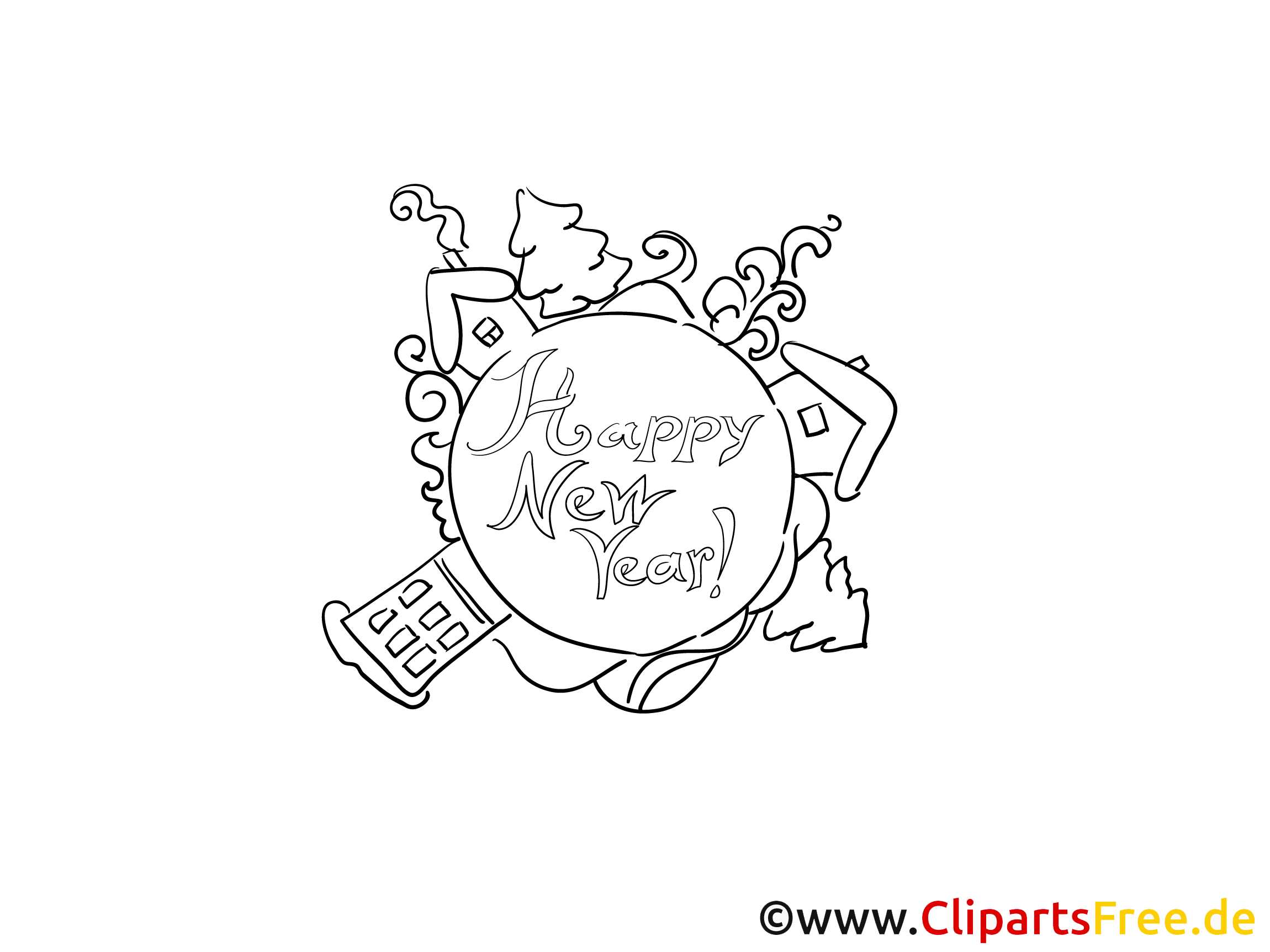Kostenloses Ausmalbild Happy New Year als PDF Malvorlage gratis