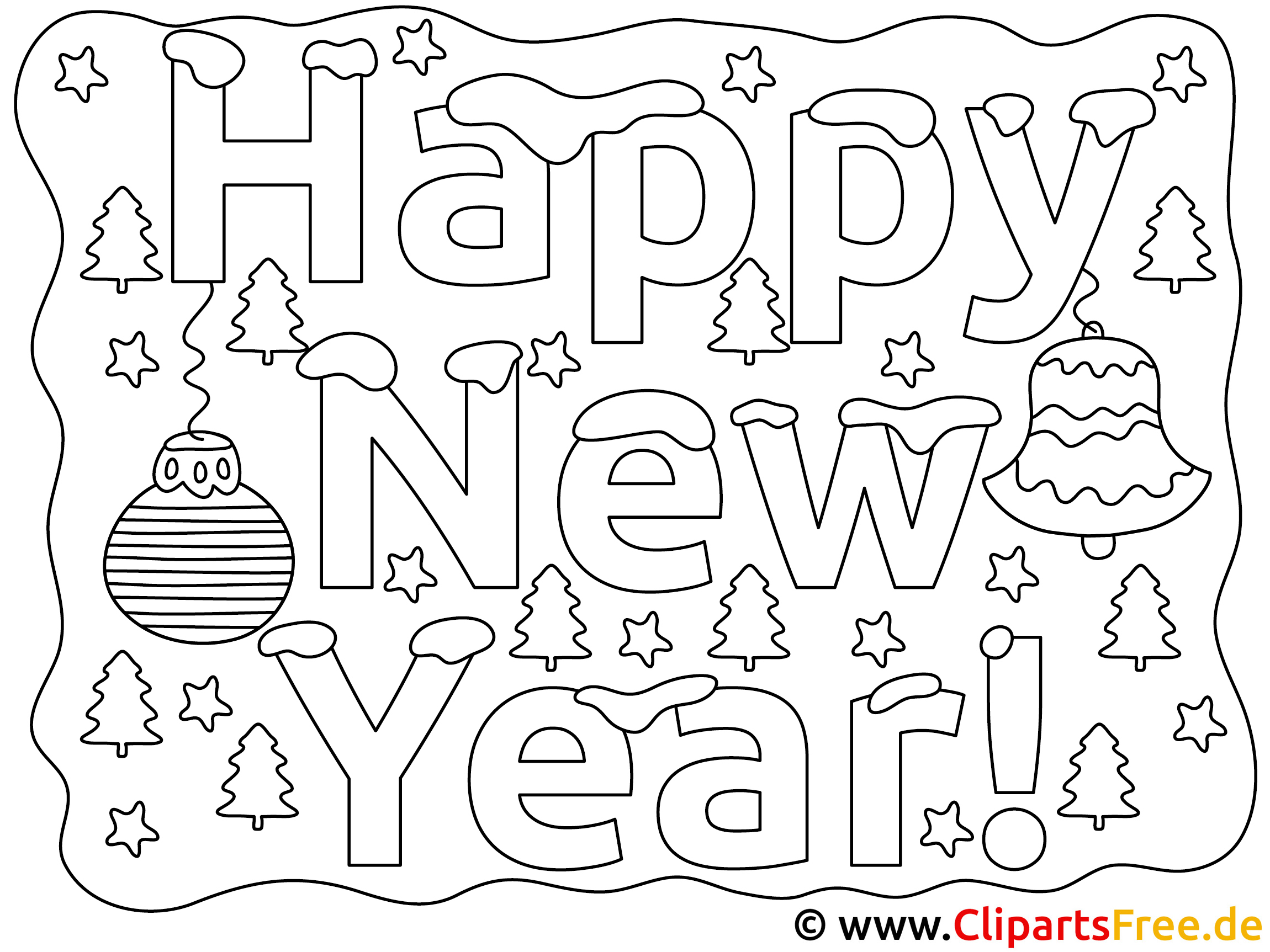 Kostenloses Ausmalbild „Frohes Neues Jahr“ als PDF Malvorlage