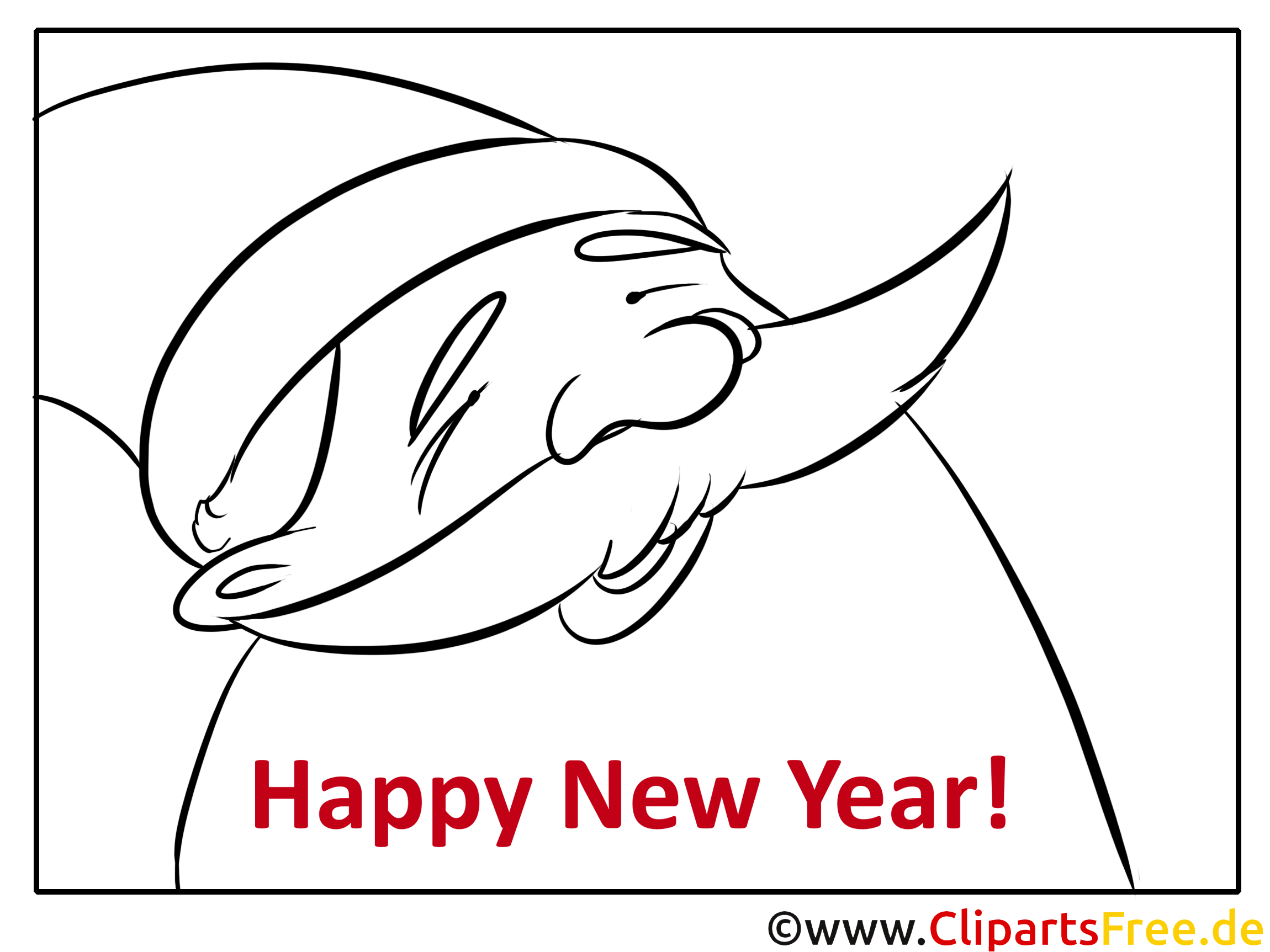 Das Bild zeigt einen fröhlichen, alten Mann mit einem großen, weißen Bart – er hat einen lustigen, rot-weißen Hut auf! Ehrlich gesagt kann man kaum glauben, wie zufrieden sein Gesicht wirkt. Er lächelt we wide, und es vermittelt direkt eine super gemütliche Stimmung. „Happy New Year!“ steht in großen Buchstaben darunter, was perfekt zur Zeit des Jahres passt. Ein richtig tolles Motiv, das einfach einlädt, es auszumalen und festliche Gefühle zu verbreiten.