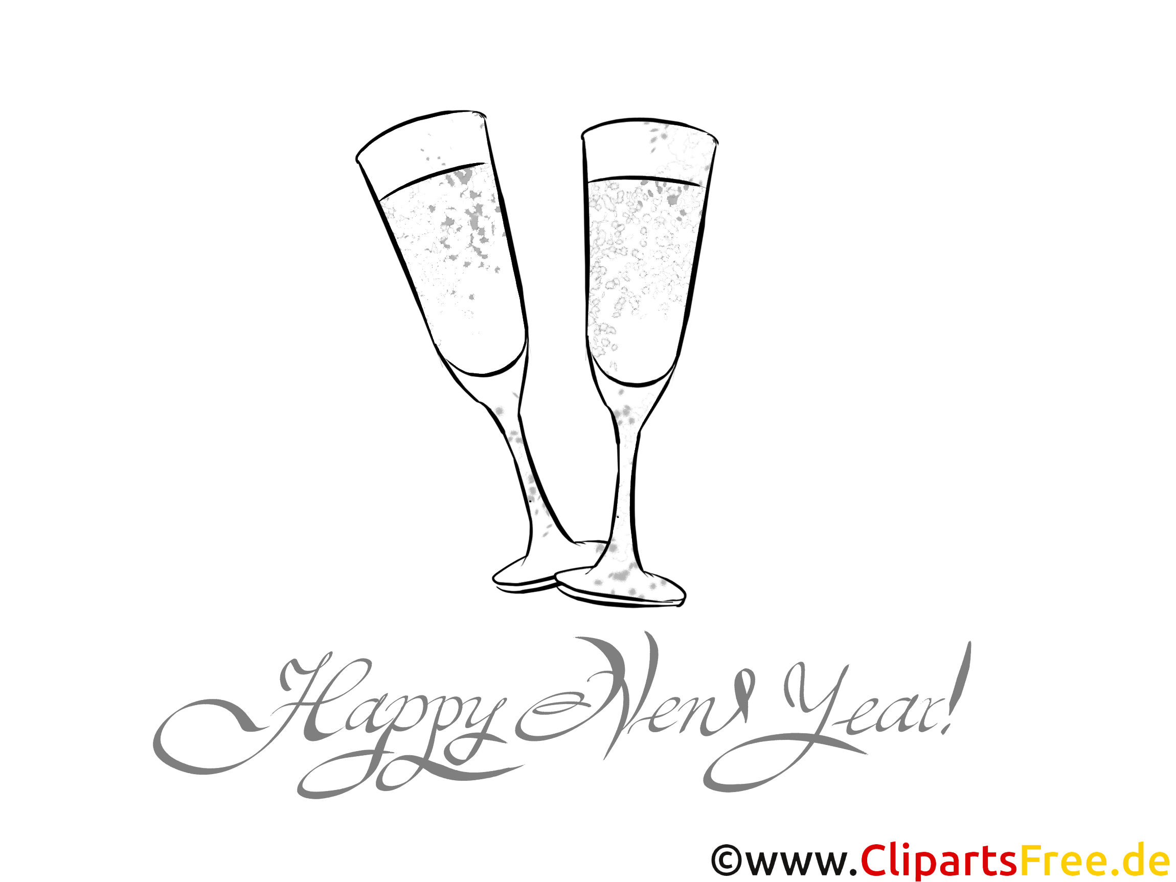 Kostenloses Ausmalbild Sektgläser für Neujahr als PDF Malvorlage