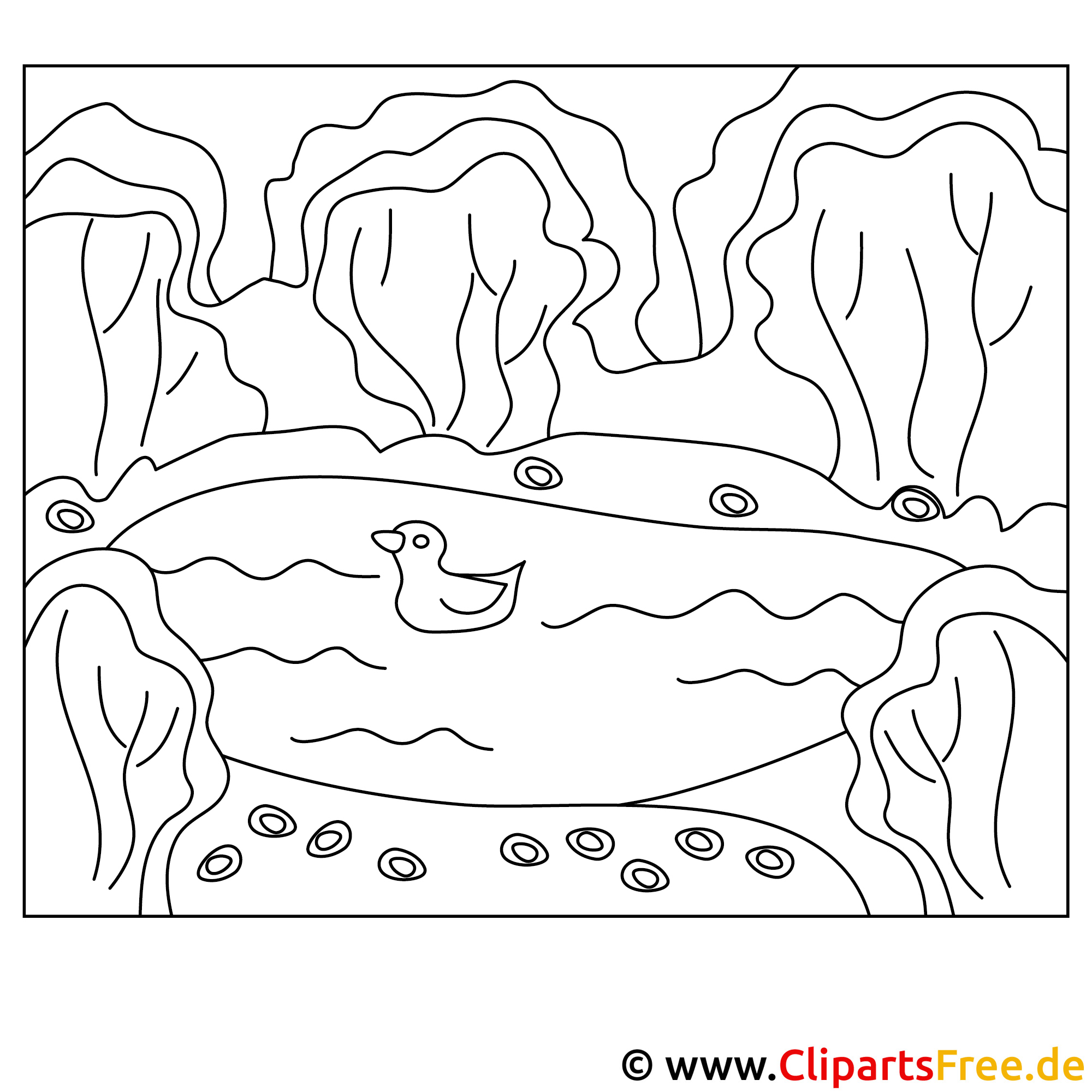 Der Zeichenstil ist sehr klar und detailreich, aber nicht überladen. Die Linien sind einfach gehalten, sodass sich Kinder mit ihren Farben richtig austoben können–. Es gibt genug Platz für eigene Ideen, um dem Bild mehr Farbe und Leben zu verleihen — . Man könnte zum Beispiel den Himmel blau malen oder die Bäume in verschiedenen Grüntönen gestalten. Die große Fläche des Teichs bietet viele Möglichkeiten dafür!