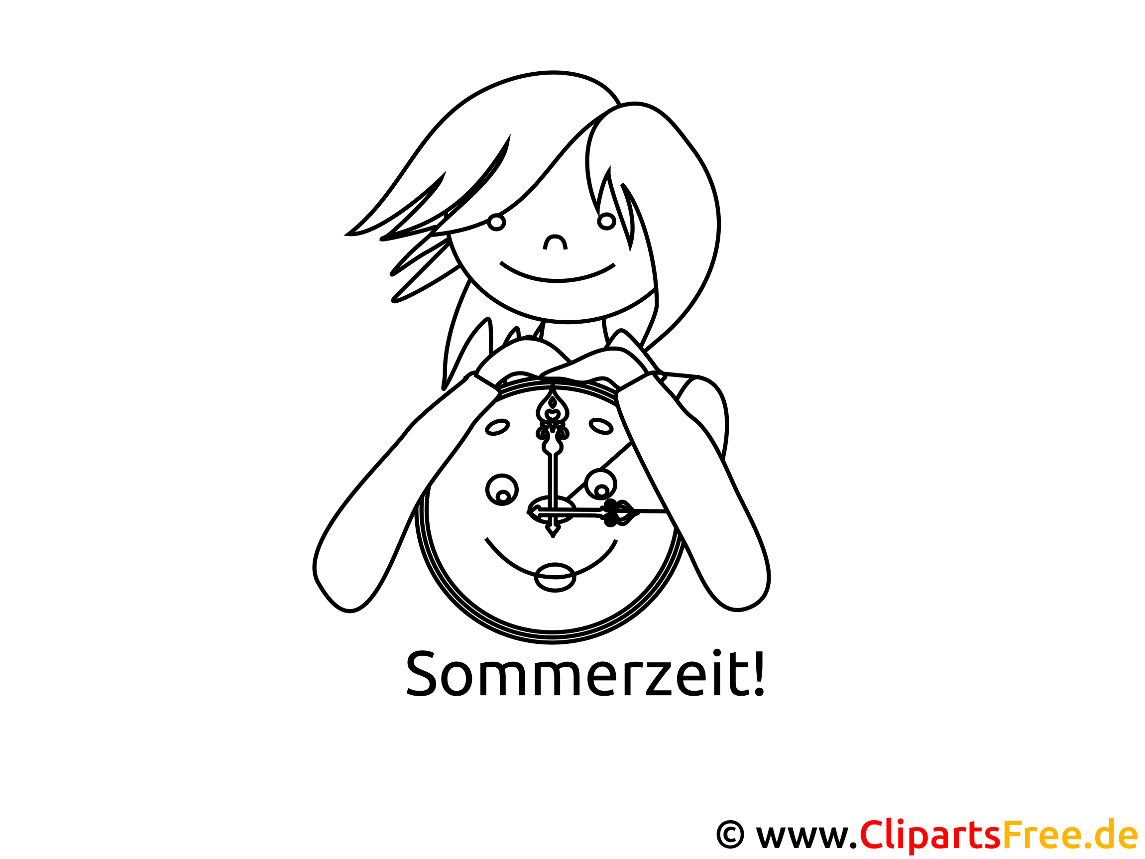 Kostenloses Ausmalbild: Fröhliches Kind mit Uhr als PDF Malvorlage