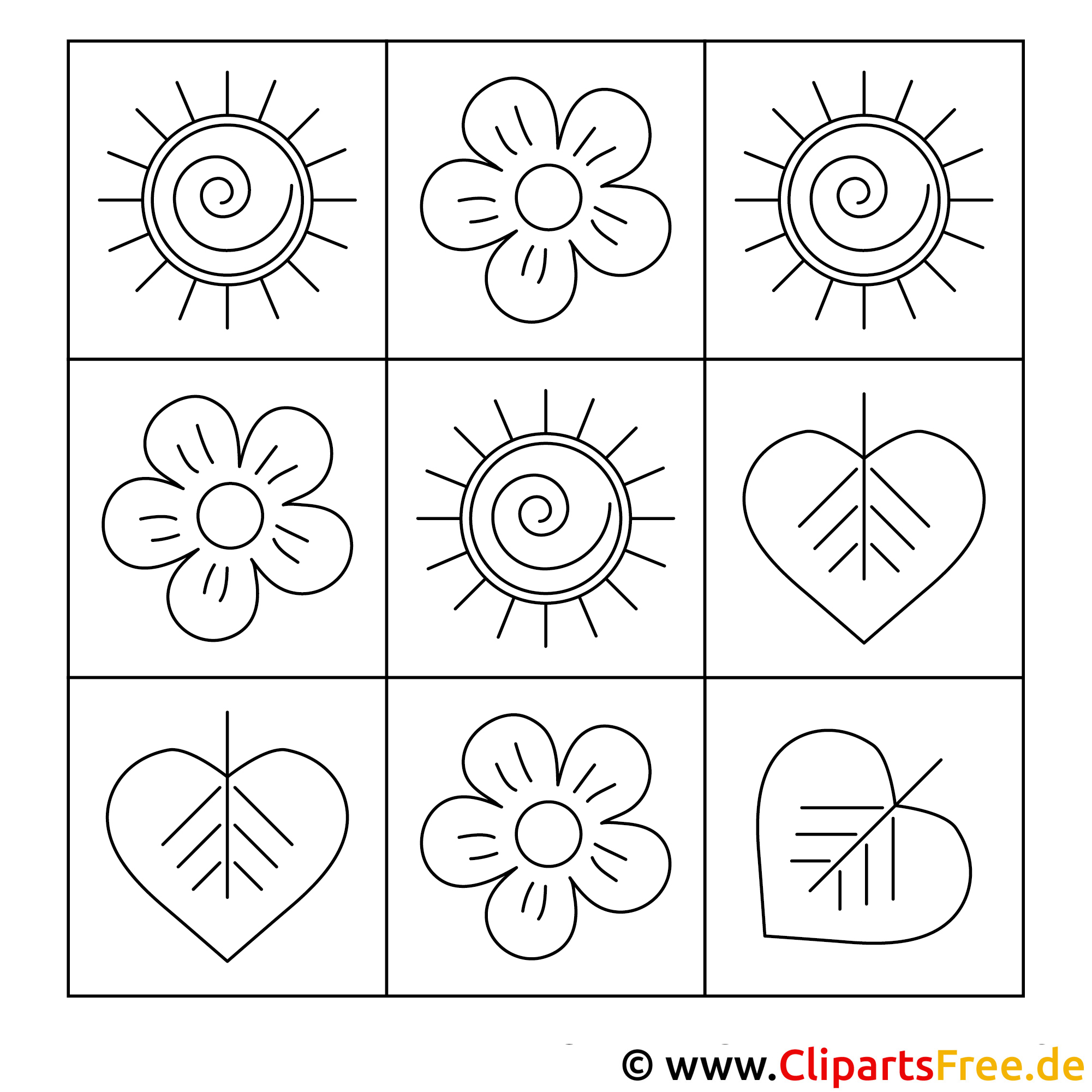 Kostenloses Ausmalbild mit Sonne, Blumen und Herzen als PDF