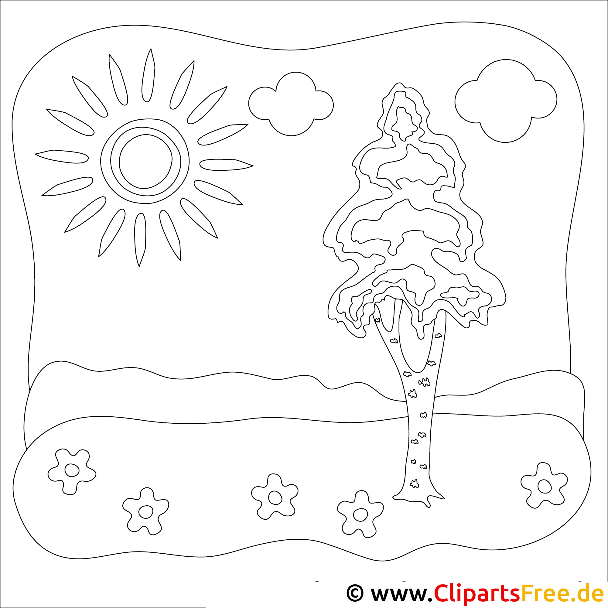 Kostenloses Ausmalbild einer fröhlichen Landschaft als PDF