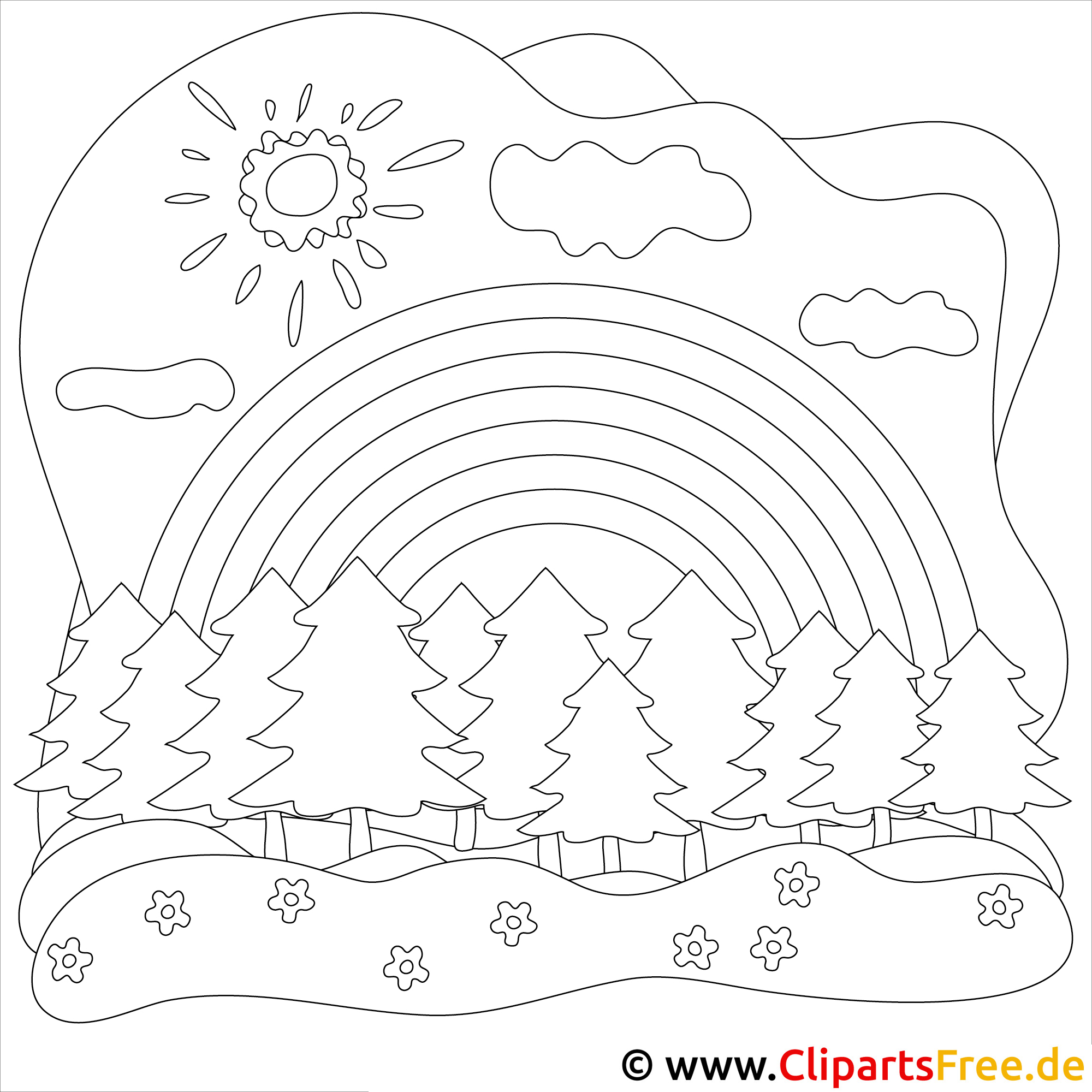 Kostenloses Ausmalbild mit Regenbogen – Malvorlage im PDF-Format
