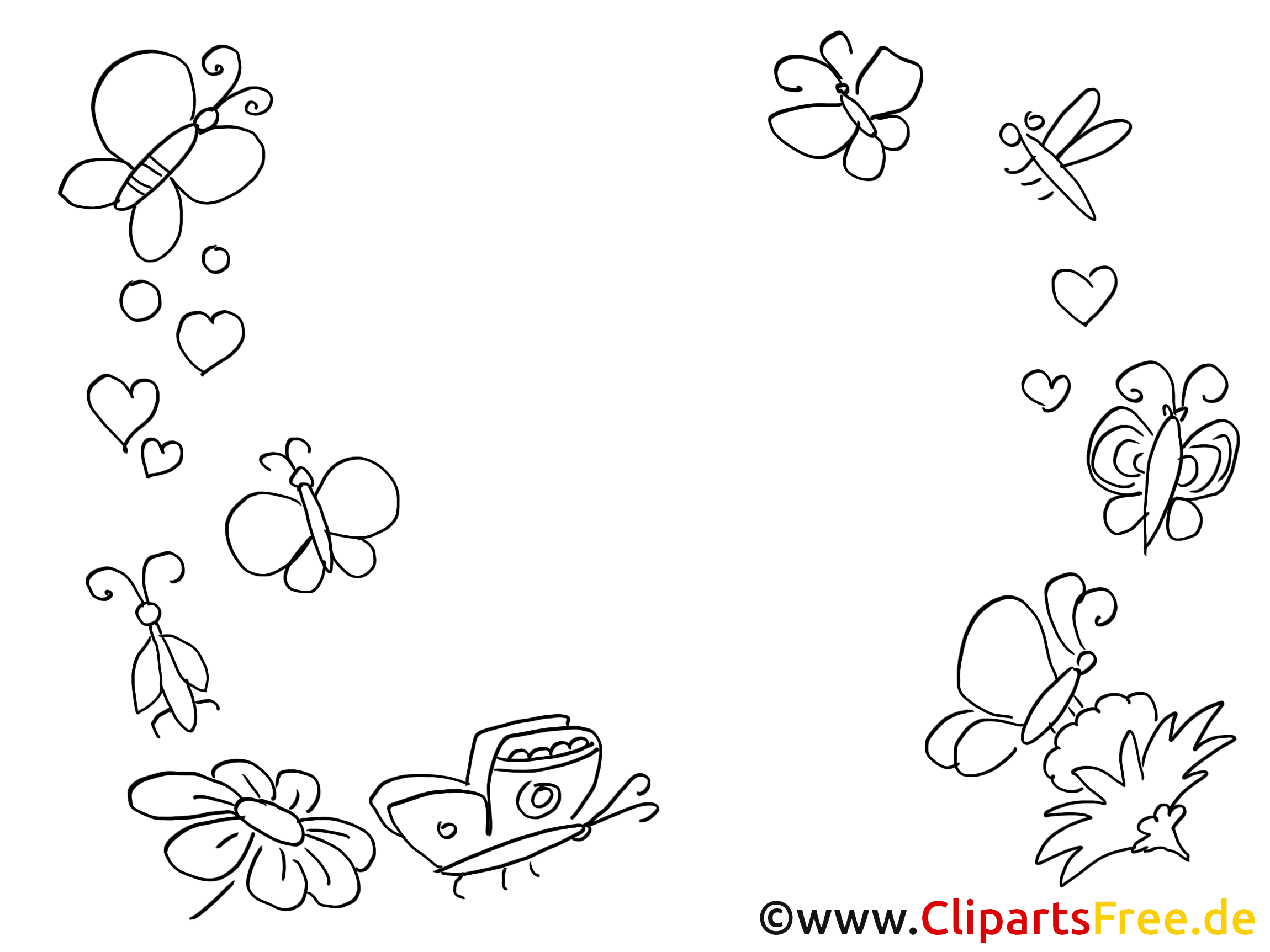 Kostenloses Ausmalbild mit Schmetterlingen und Blumen im PDF