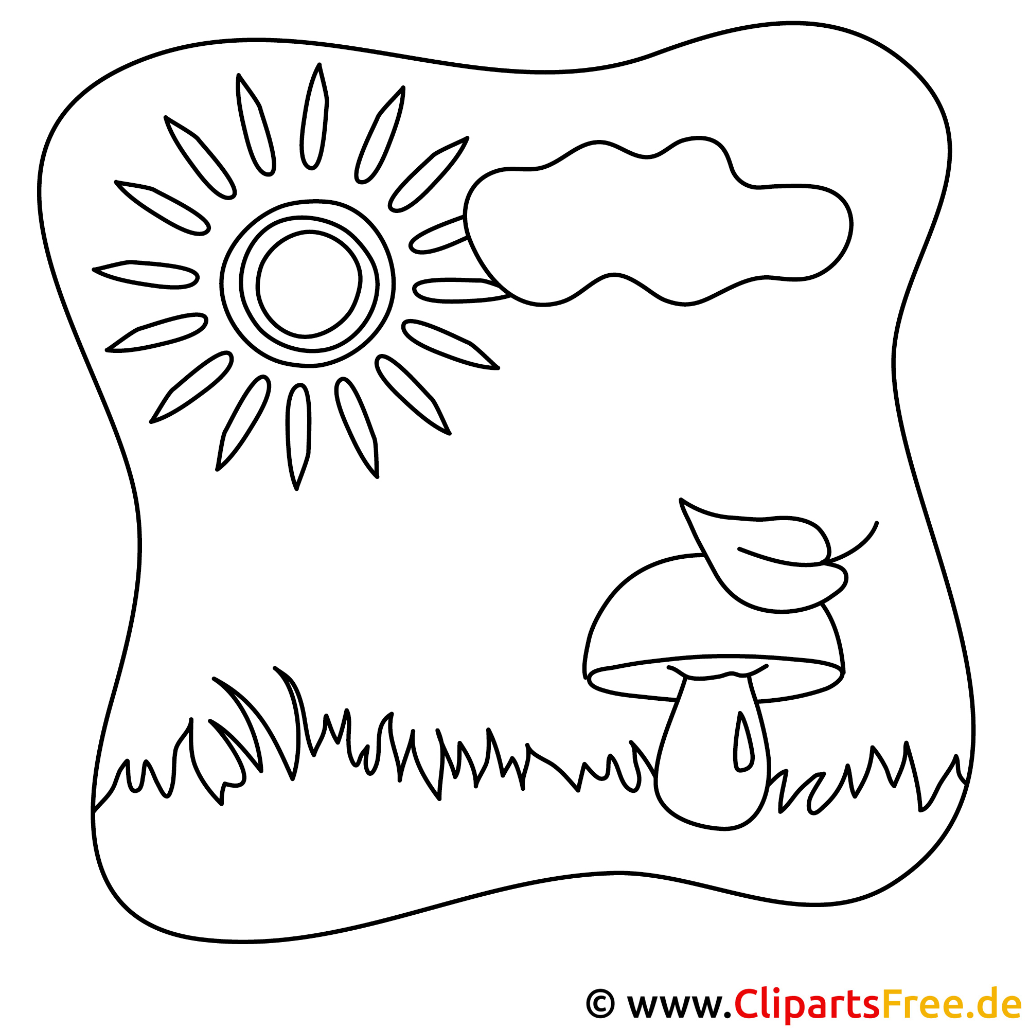 In diesem tollen Ausmalbild siehst du eine sonnige Landschaft. Ganz oben prangt die große, strahlende Sonne mit fröhlichen Strahlen, die ins Bild scheinen. An einem der Wolken vorbei schaut die Sonne hervor – wie schön! Und dann gibt’s da noch den kleinen Pilz, der ganz entspannt im grünem Gras wächst. Er hat sogar ein hübsches Blättchen auf dem Hut. Einfach süß, oder? Das Bild vermittelt ein Naturgefühl, als könnte man gleich raus in den Garten und die frische Luft genießen.