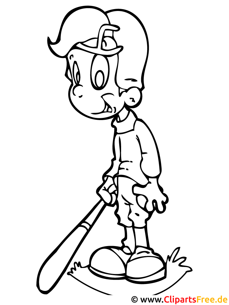 Kostenloses Ausmalbild eines fröhlichen Jungen mit Baseball PDF