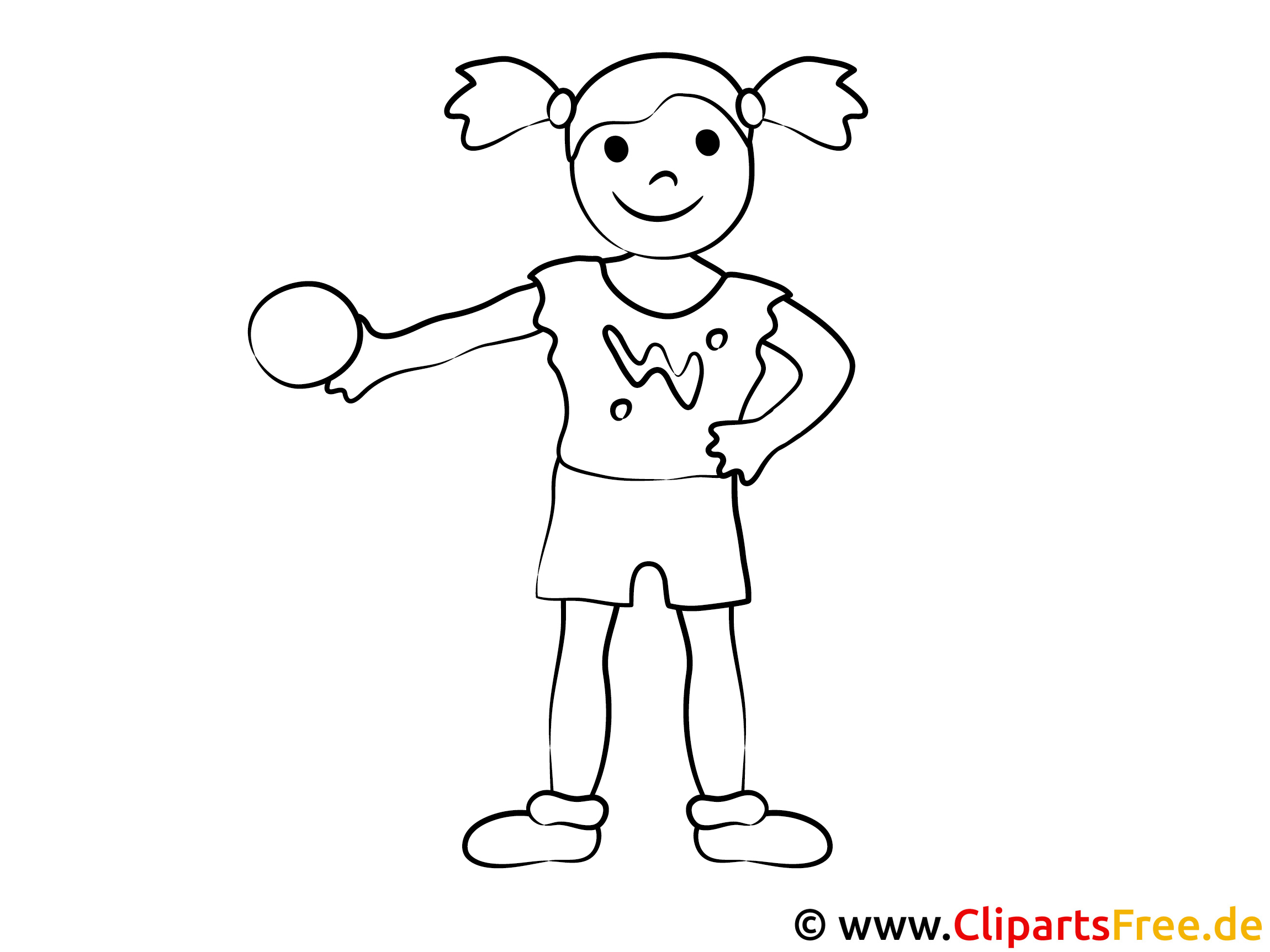 Hier sehen wir ein fröhliches Kind, das voller Energie wirkt. Mit Zöpfen, die ein bisschen verrückt abstehen, hält sie einen Ball in einer Hand. Sie hat ein lustiges Shirt an, auf dem ein großer Buchstabe „W“ prangt. Die kurze Hose ist praktisch, perfekt für ein Spiel. Ihr Gesicht strahlt Freude aus, und es scheint, als wäre sie bereit für eine neue Herausforderung. Ein Bild, das einfach zum Ausmalen einlädt!