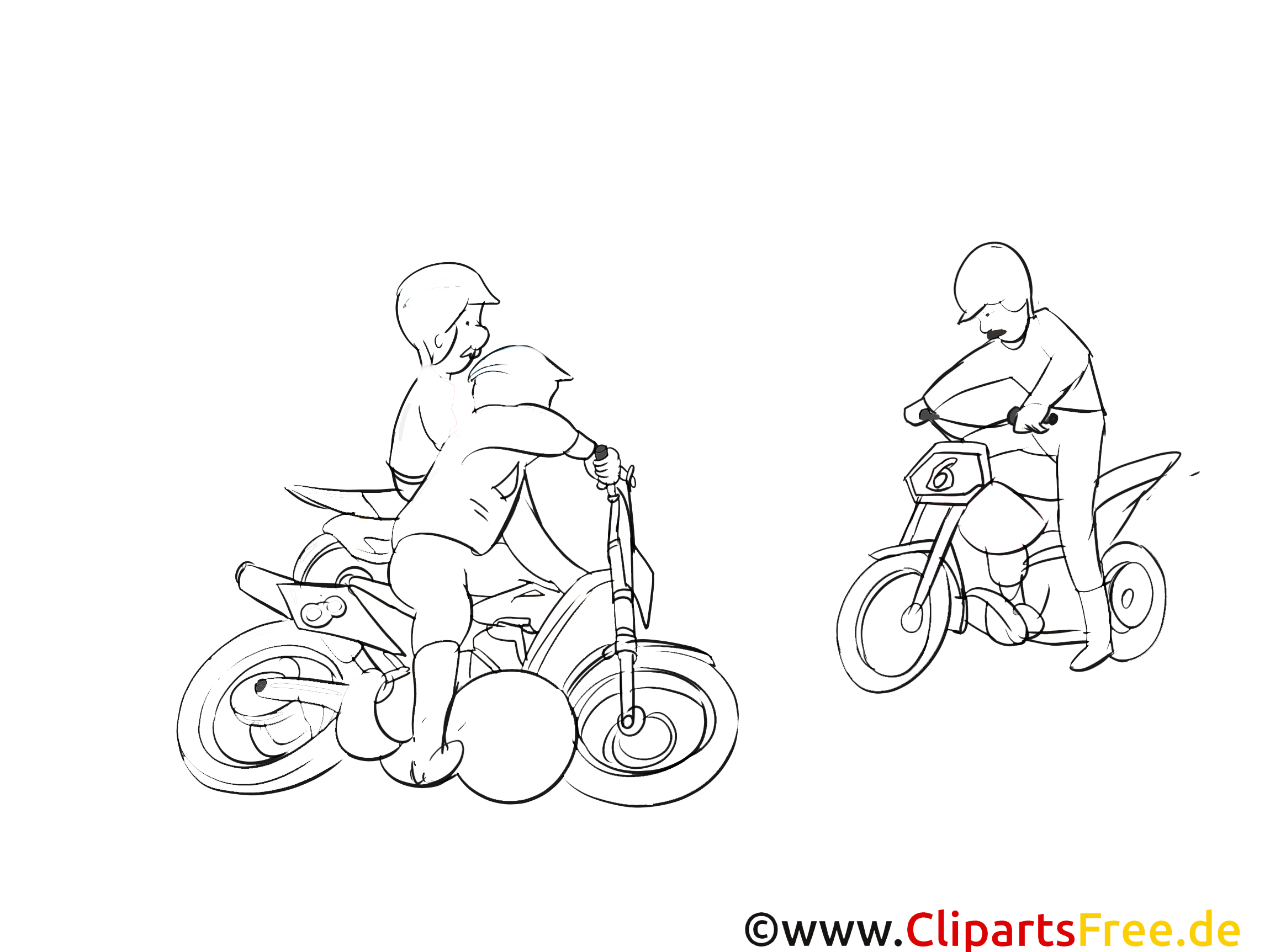 Kostenloses Ausmalbild von Kindern auf Motorrädern im PDF-Format