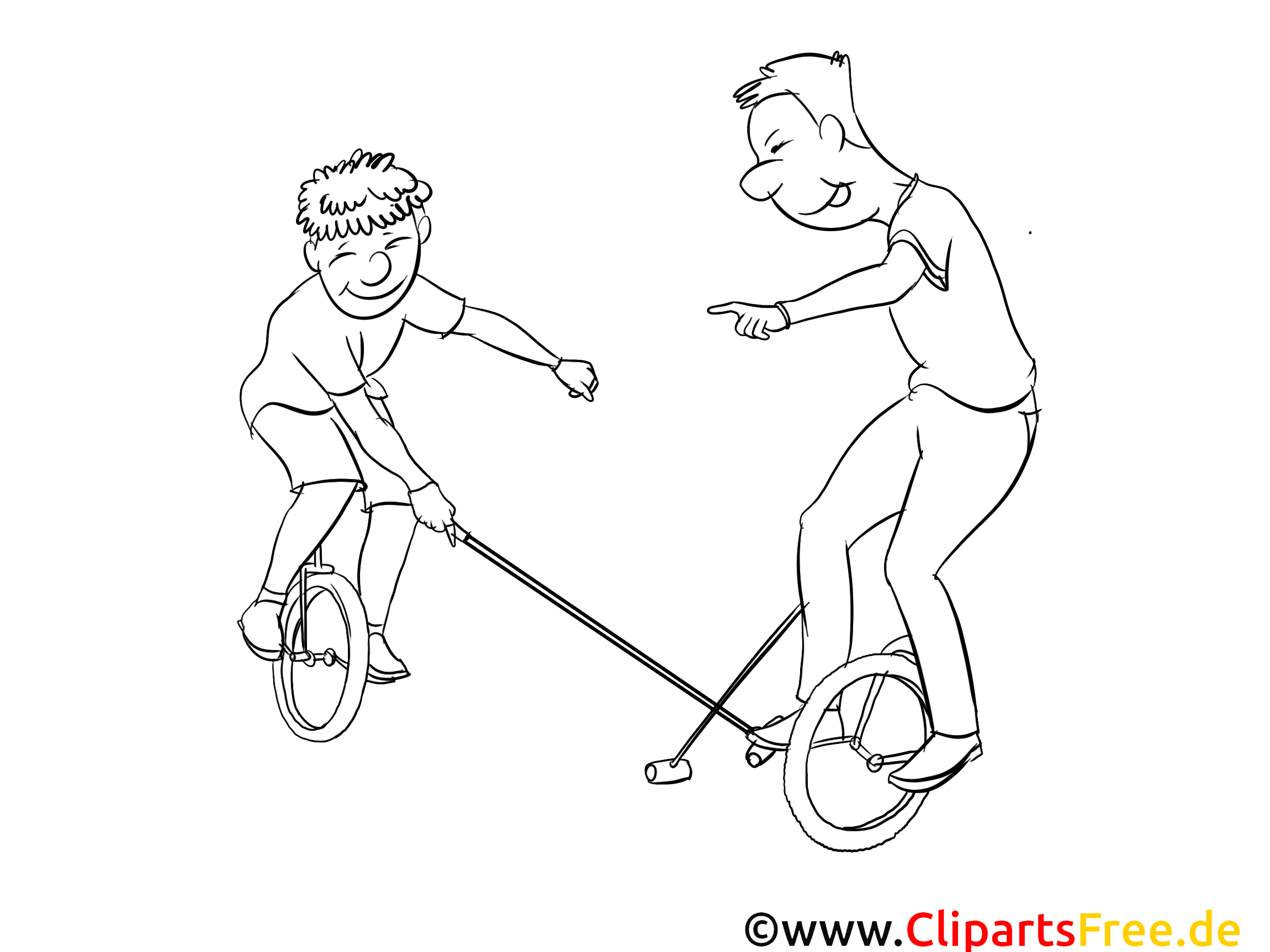 In diesem lustigen Ausmalbild sehen wir zwei Kinder auf Einrädern. Ehrlich gesagt, es sieht so aus, als hätten sie eine Menge Spaß! Eins der Kinder lacht laut, während es mit einem Stock verbunden ist. Das andere Kind hat auf seinem Einrad eine ziemlich beeindruckende Haltung. Man könnte fast meinen, sie machen ein Wettrennen – oder vielleicht ein bisschen Kunststückchen. ähm, Die Gesichter strahlen vor Freude und das macht das Bild noch einladender zum Ausmalen. Mal ganz praktisch, so ein Bild kann wirklich die Fantasie anregen!