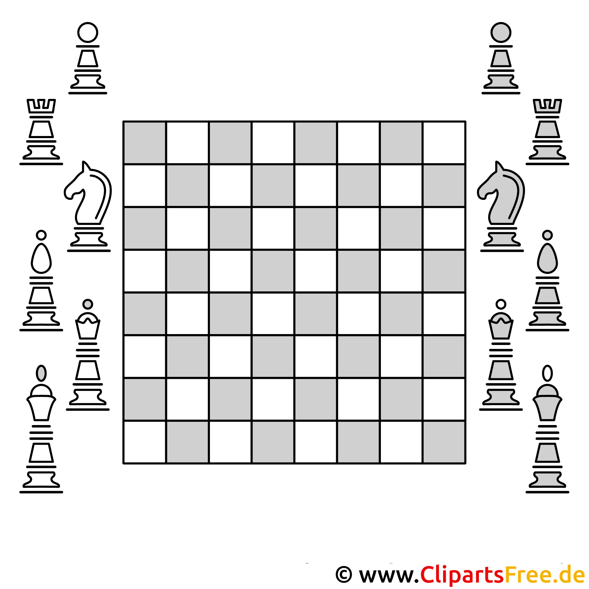 Kostenloses Ausmalbild Schachbrett mit Figuren als PDF Malvorlage