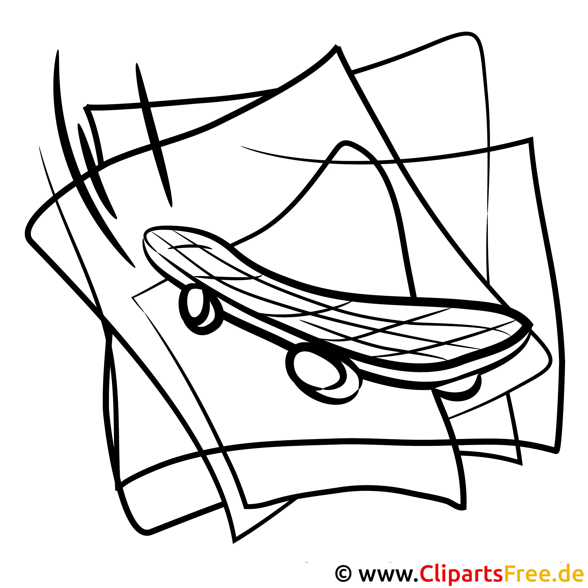 Kostenloses Ausmalbild Skateboard als PDF – Malvorlage gratis
