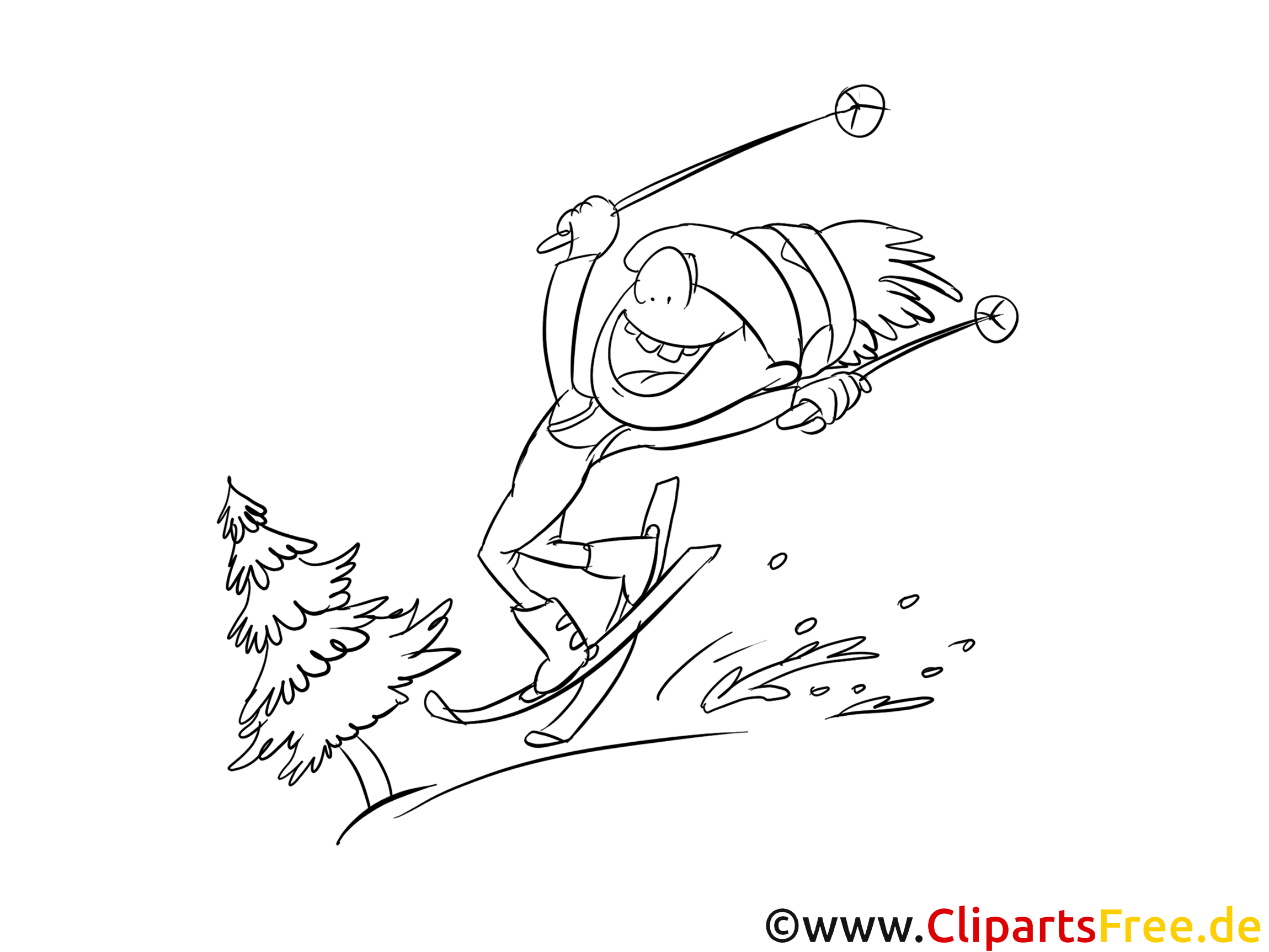 Kostenloses Ausmalbild Skifahrer im Schnee – Malvorlage PDF gratis