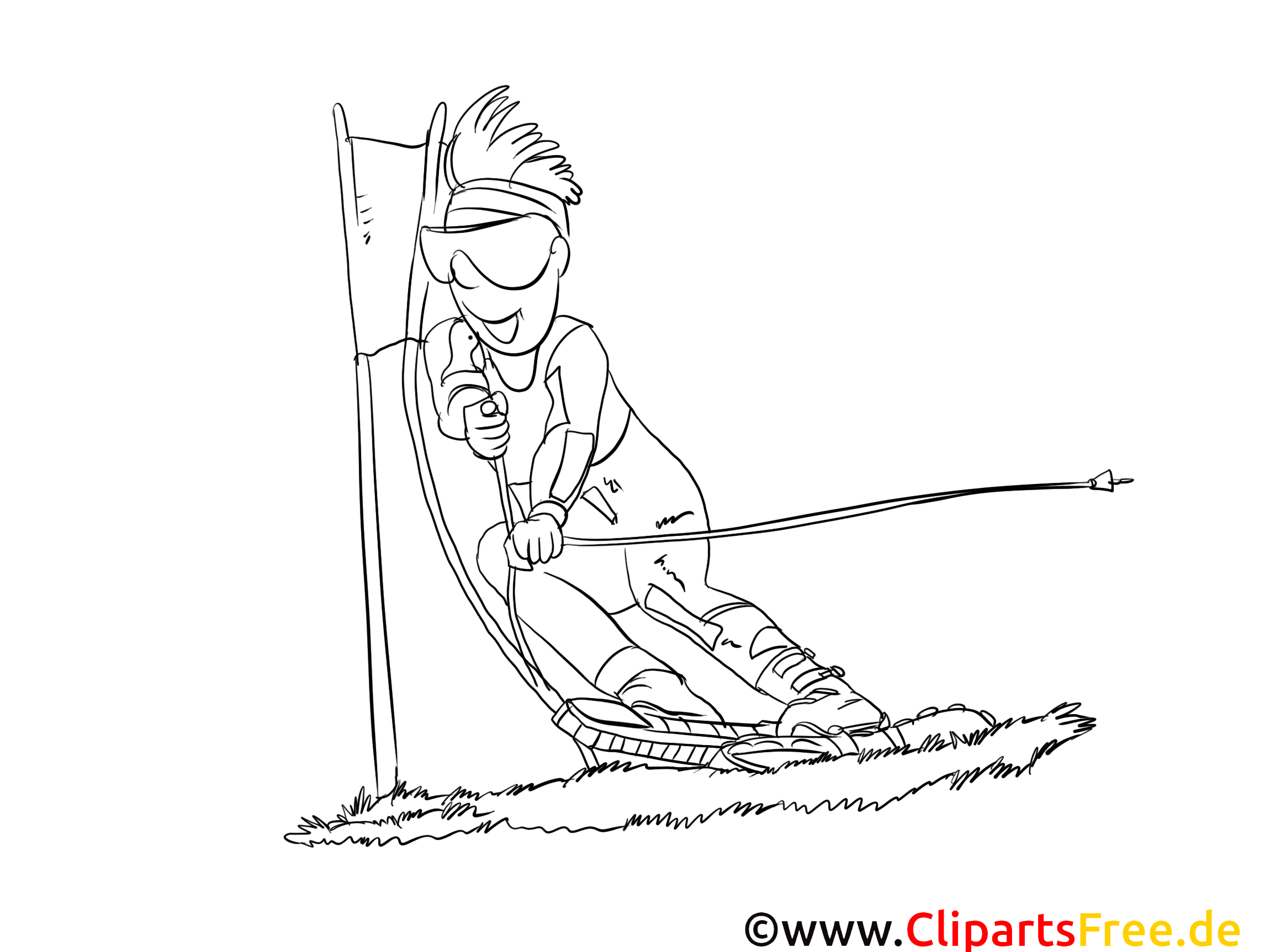Kostenloses Ausmalbild Skifahrer als Malvorlage im PDF-Format