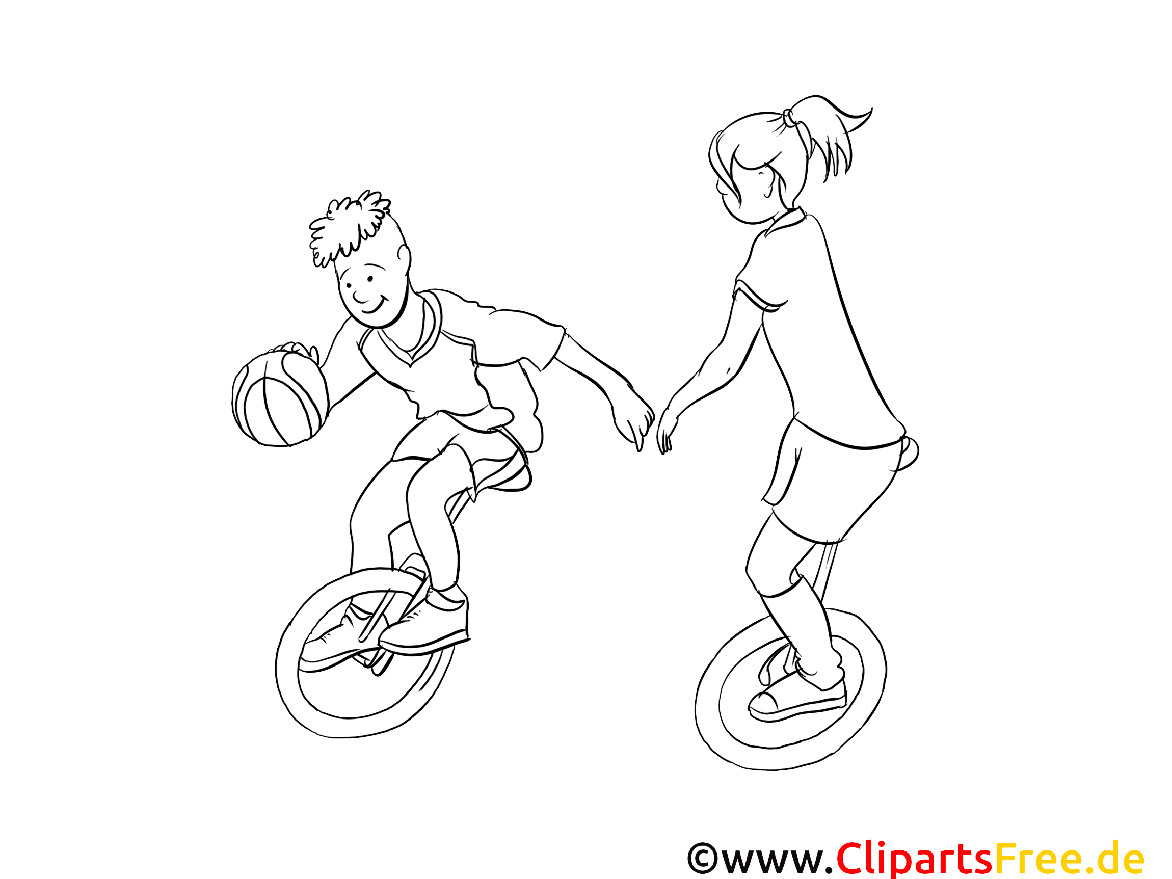 In dieser tollen Malvorlage sehen wir zwei Kinder, die sich auf ihren Einrädern prima vergnügen! Das Mädchen hat einen fröhlichen Ausdruck im Gesicht, während sie dem Jungen zusieht, der einen Basketball in der Hand hält. Man könnte fast denken, dass er kurz davor ist, einen tollen Wurf zu machen! Die Szene strahlt pure Freude und gemeinsames Spiel aus, was besonders Kinder neugierig machen wird. Die Details sind schön gezeichnet und bieten viele Möglichkeiten, lebendige Farben auszumalen.