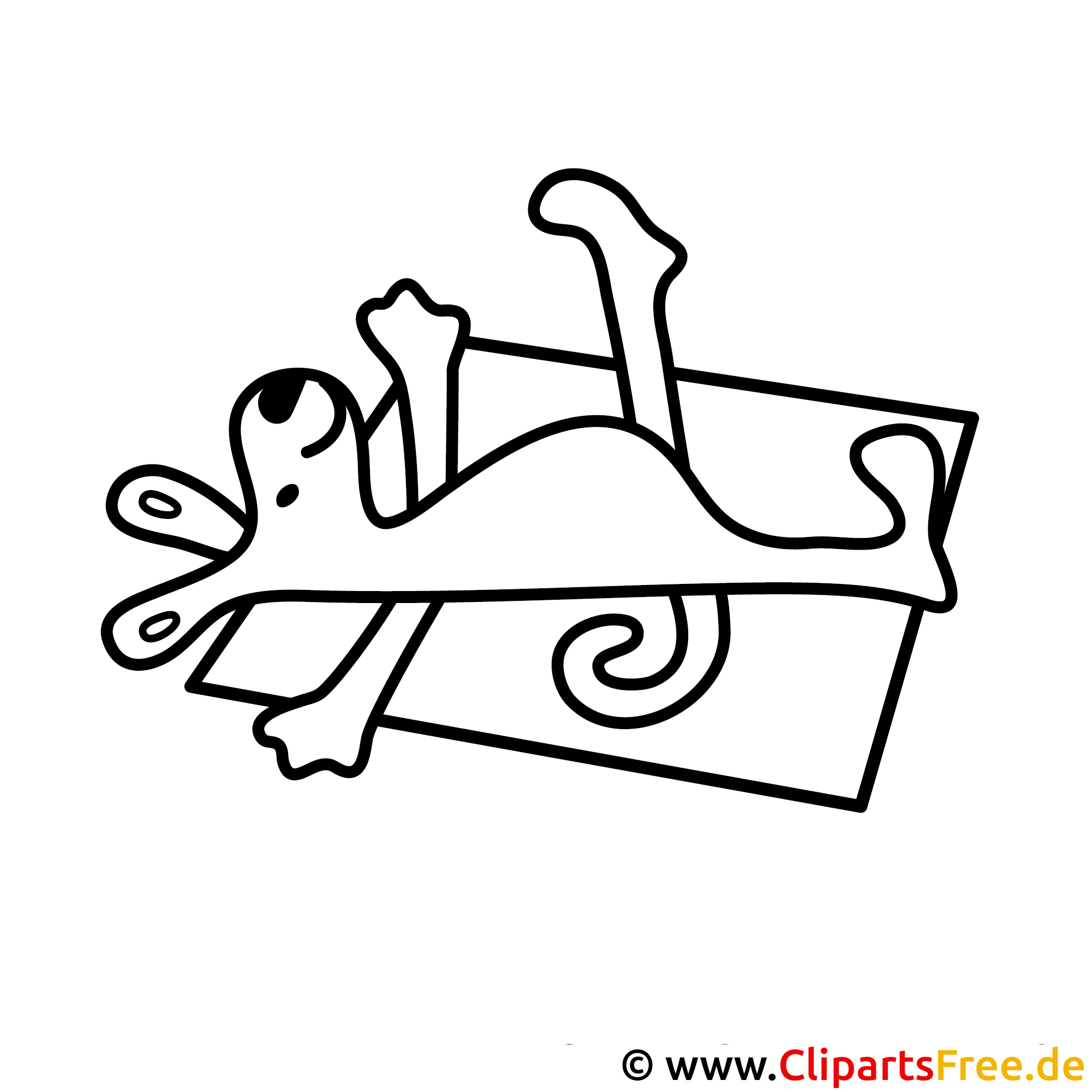 Hier haben wir ein wirklich putziges Motiv – einen fröhlichen Hund, der auf einem Stück Papier liegt. Sein Körper ist ganz entspannt, und es sieht so aus, als ob er gerade ein kleines Nickerchen macht oder vielleicht einfach nur die Zeit genießt. Die kleinen Ohren und der Schwänzchenwind machen ihn super niedlich! Das Malbild ist klar und einfach, perfekt für kleine Künstler, die Spaß am Ausmalen haben.