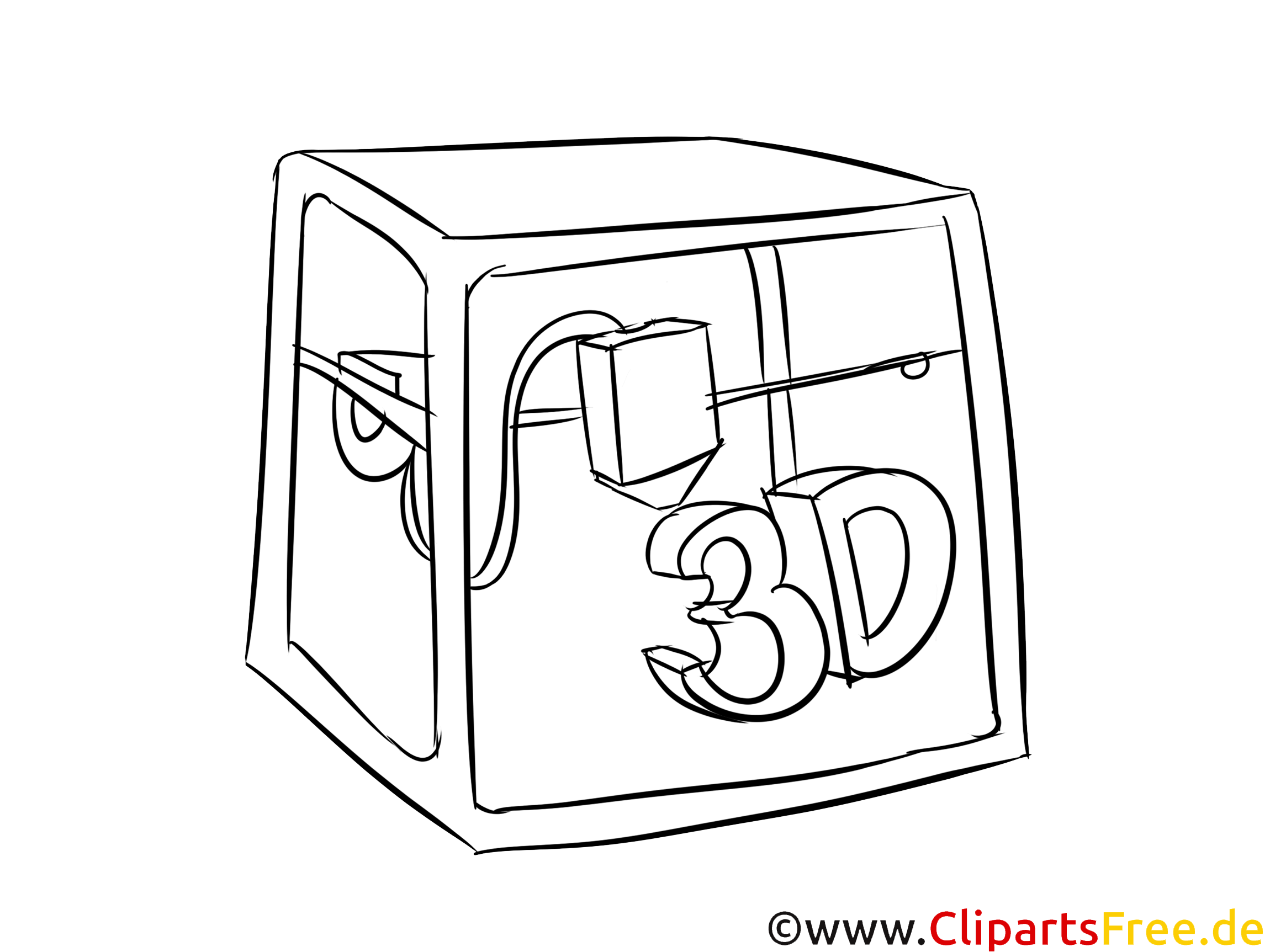 Kostenloses Ausmalbild 3D-Drucker als PDF Malvorlage zum Ausdrucken