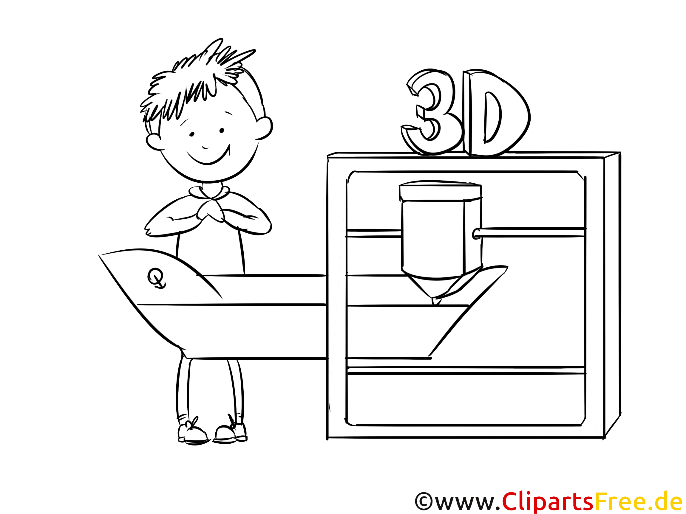 Kostenloses Ausmalbild 3D-Drucker für kreative Kinder im PDF