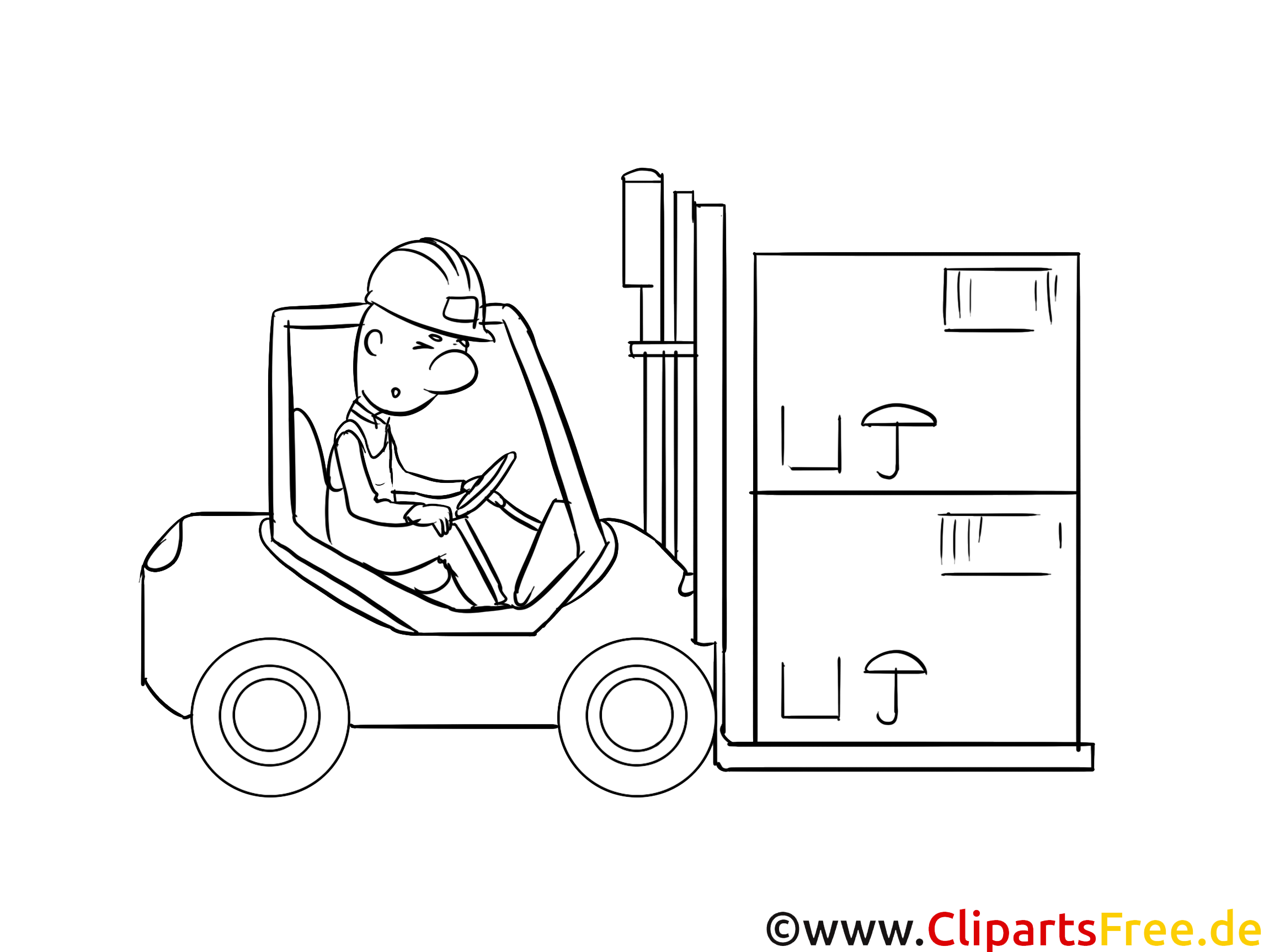 Kostenloses Ausmalbild Gabelstaplerfahrer als Malvorlage im PDF