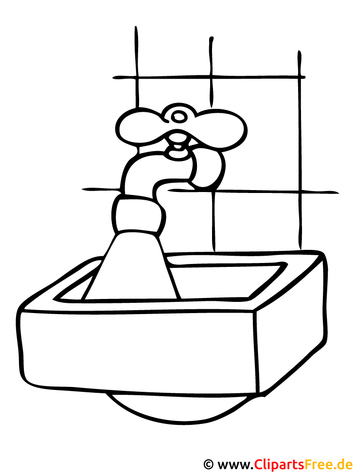 Kostenloses Ausmalbild Waschbecken als PDF Malvorlage für Kinder