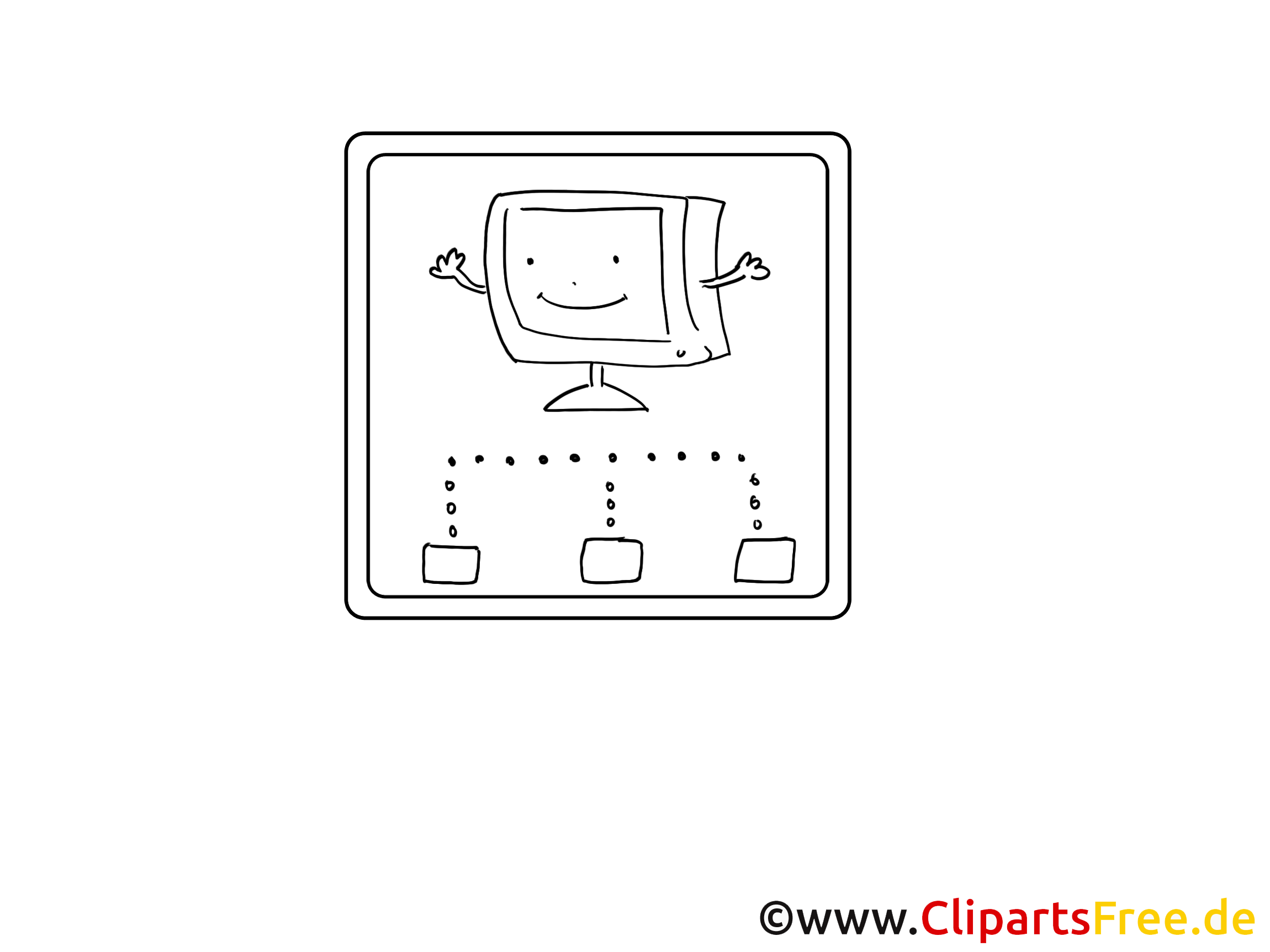 Hier haben wir ein ganz witziges Motiv: einen lächelnden Computer, der mit seinen kleinen "Armen" einladend wirkt. Das Bild zeigt außerdem eine Reihe von Kästchen, die, hmmm, wie kleine Knoten sitzen. Sie scheinen für irgendeine Verbindung oder Kommunikation zu stehen – vielleicht in einem Netzwerk? Man könnte sich vorstellen, wie der Computer fröhlich seine Aufgaben übernimmt und so für Spaß beim Malen sorgt. Die klare Struktur des Bildes macht es natürlich super einfach, hier kreativ zu werden.